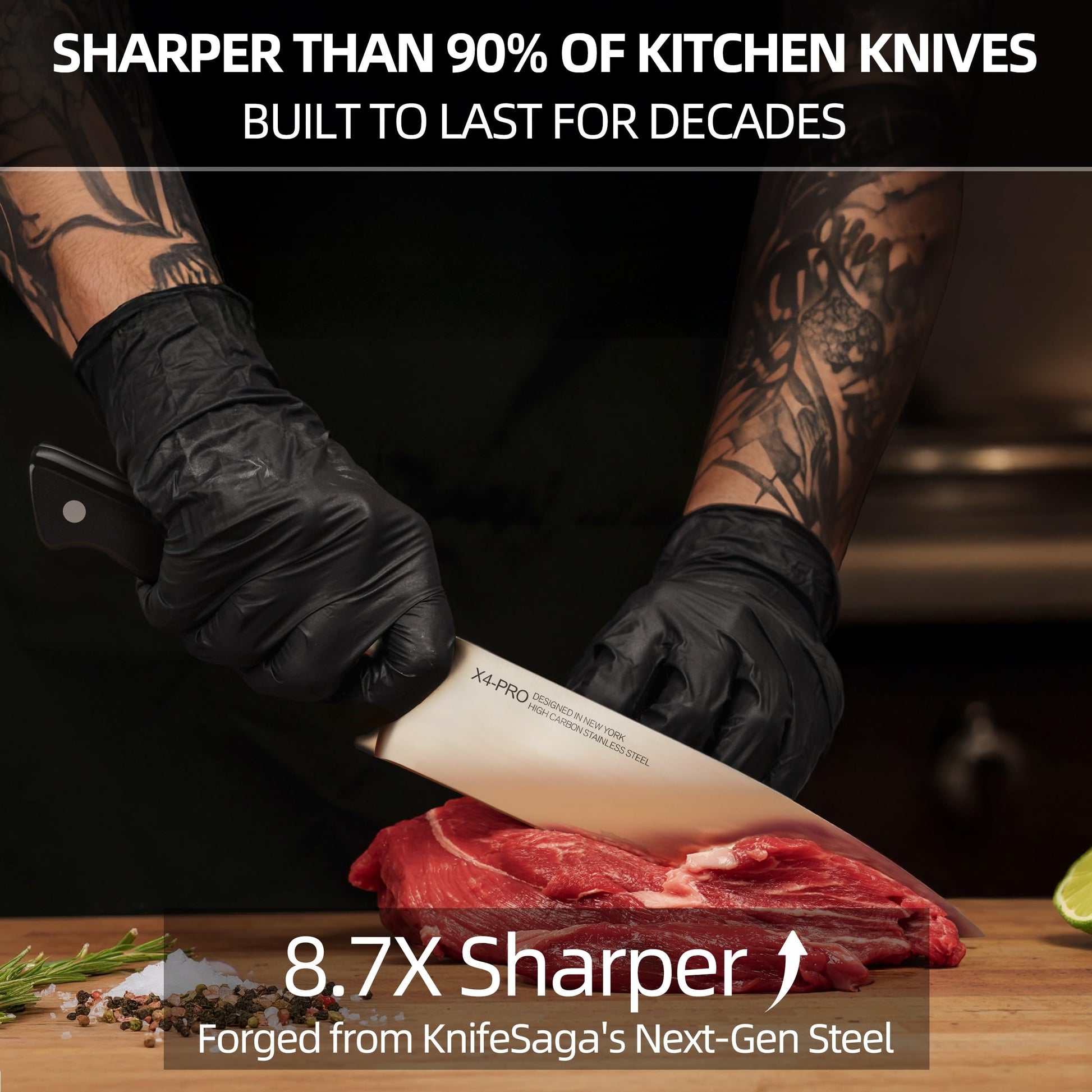 - Confidence in Every Cut: KnifeSaga has developed an innovative steel with optimized structural composition and carbon content. Each blade features an incredibly sharp 10° cutting edge, ensuring every slice is smooth, swift, and precise.