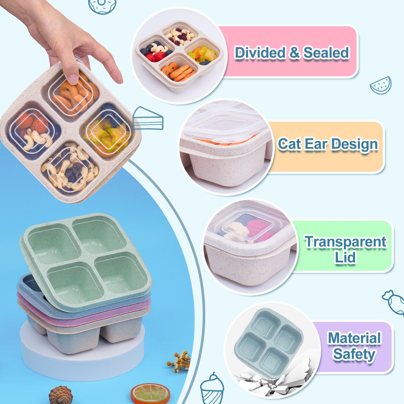 - Reusable Food Material --- 4 compartment snack containers is made of premium and BPA-free wheat straw material that can be used multiple times, please use our wheat straw snack containers instead of disposable snack containers to protect the environment