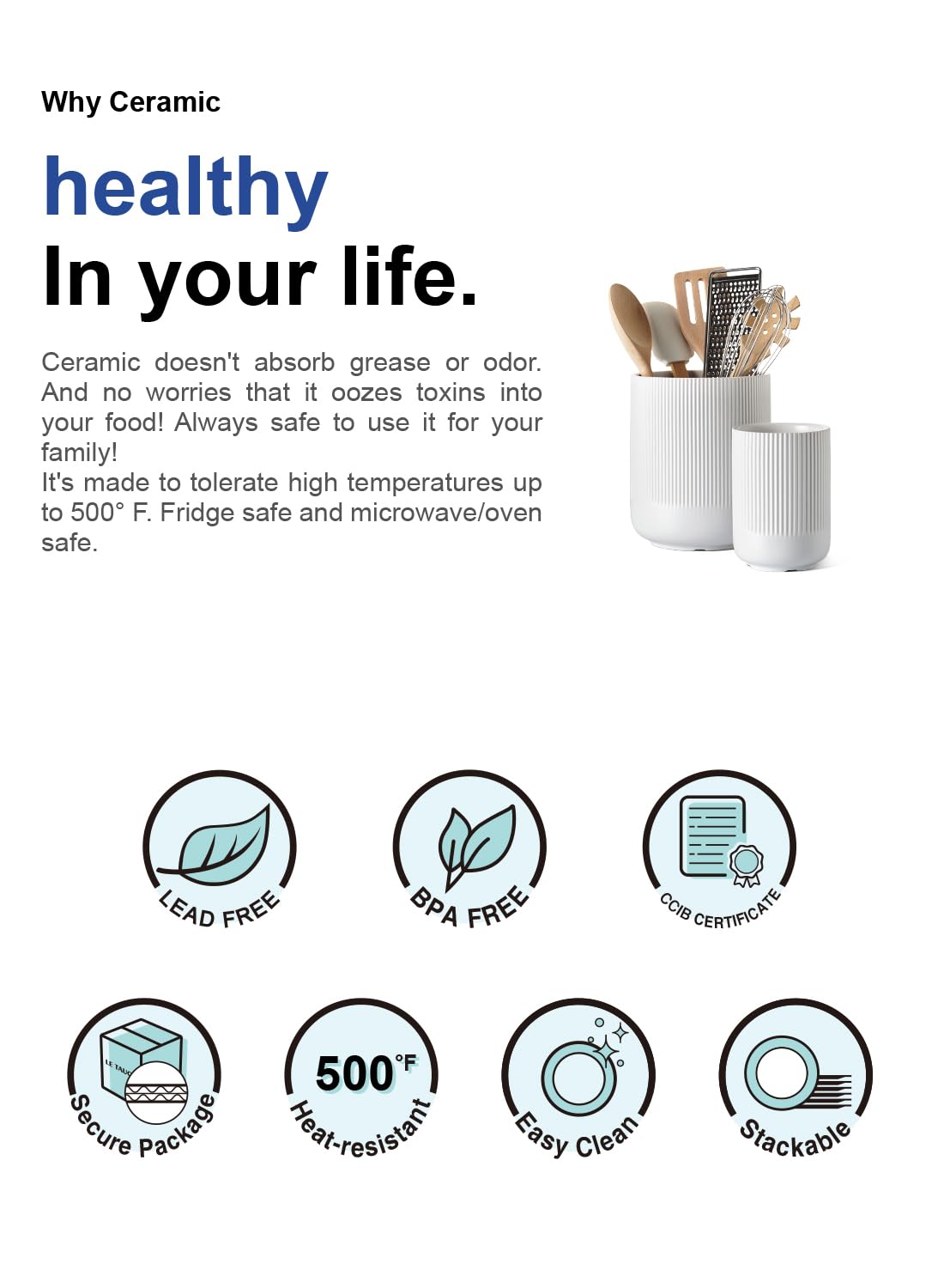 - Solid and Secure: This utensil holder for kitchen counter provides easy access to your utensils, offering a stable and relaxing experience due to its substantial weight; Crafted from premium ceramic materials, these holders are not only robust but also easy to clean; Rest assured, they will remain securely in your countertop, giving you peace of mind while using them