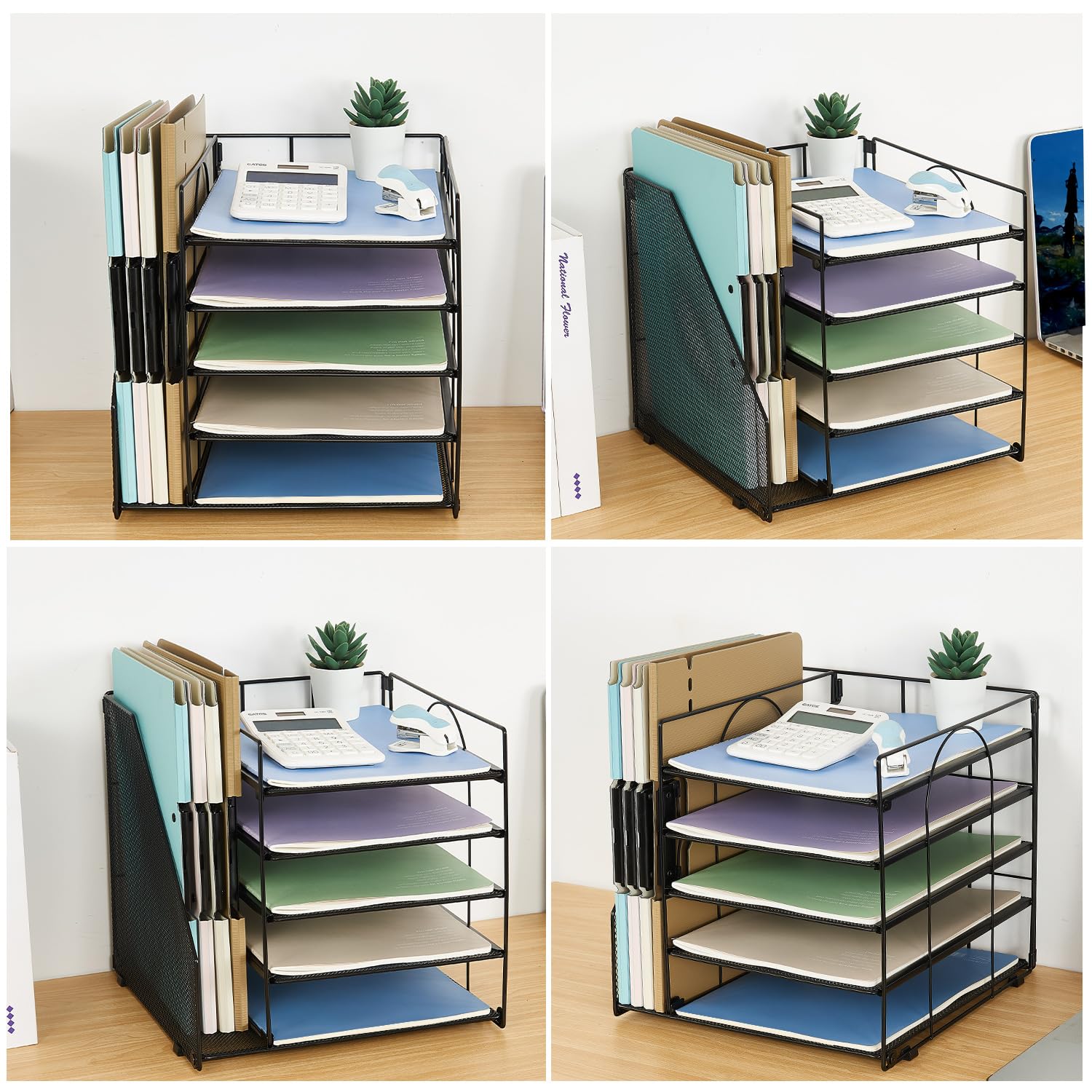 LEKETREE Desk Organizers and Accessories, 5-Tier Paper Letter Tray Organizer with File Holder, Desktop Organizer for Office Supplies (Black)