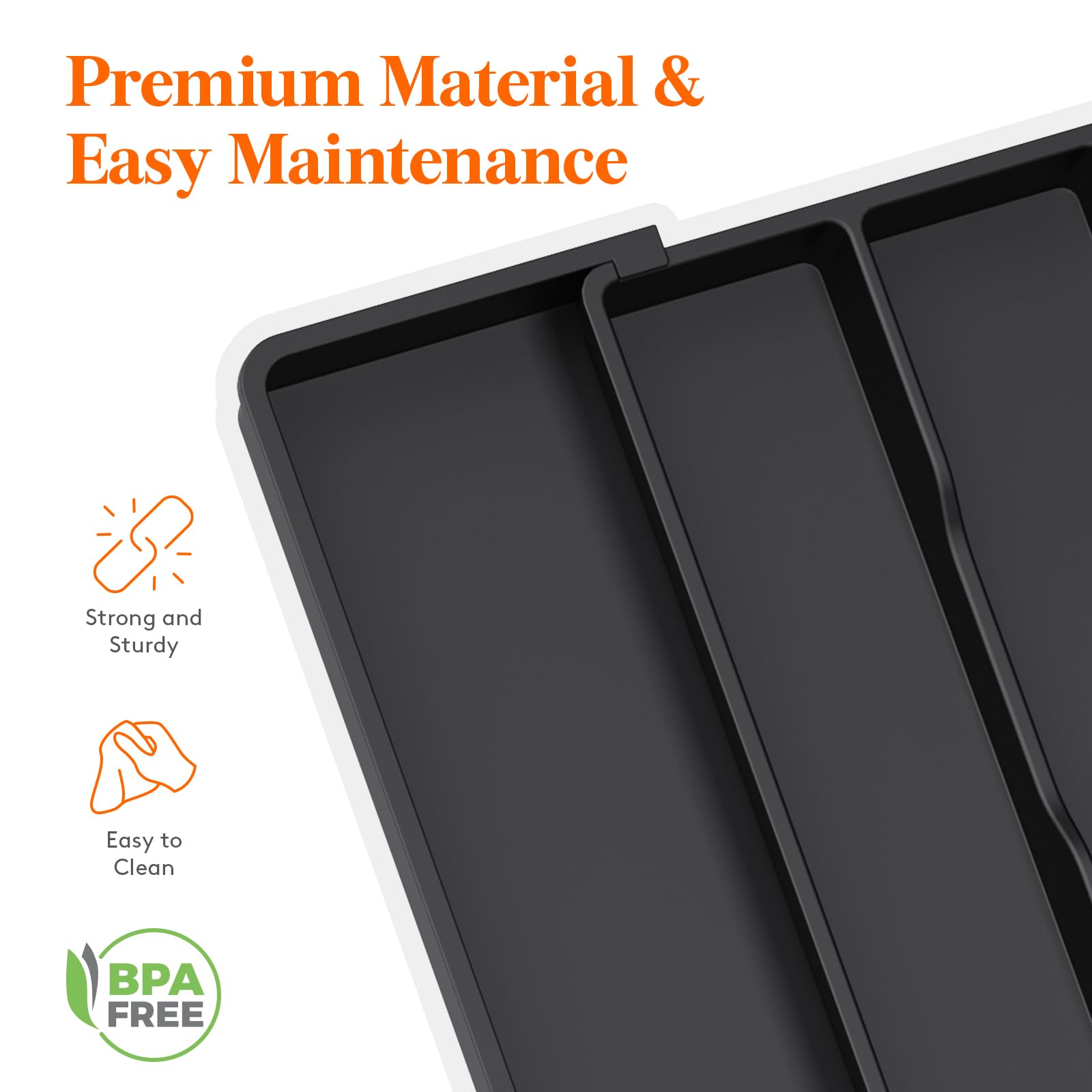 - Safe to Use: Crafted from BPA-free PP material, this cutlery drawer organizer guarantees the safety of all your utensils, silverware, and flatware. Cleaning is a breeze as well - simply rinse with water to remove stains.