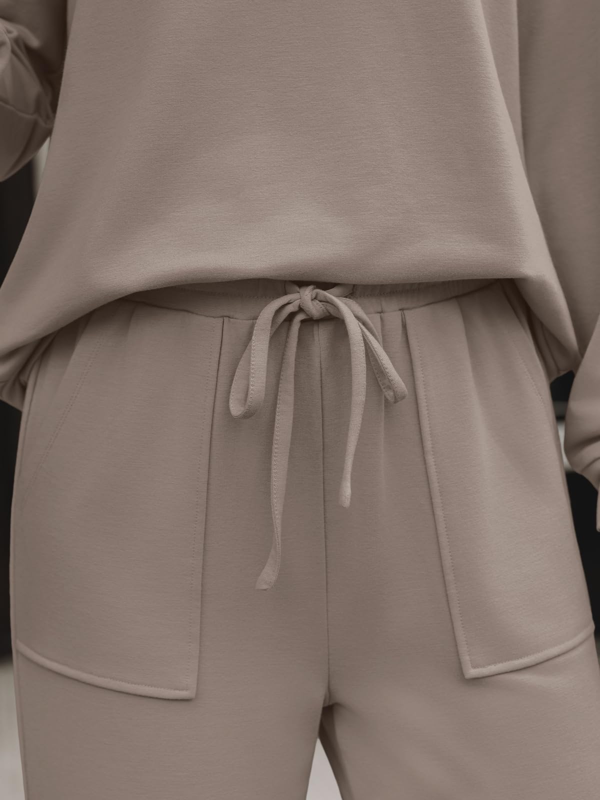LILLUSORY Womens Lounge Two 2 Piece Sets Early Fall 2025 Fashion Outfits Clothes Clothing Matching Sweatsuit Sweat Suit Trendy Airport Travel Winter Loungewear Pajamas Cruise Old Money Nutmeg M