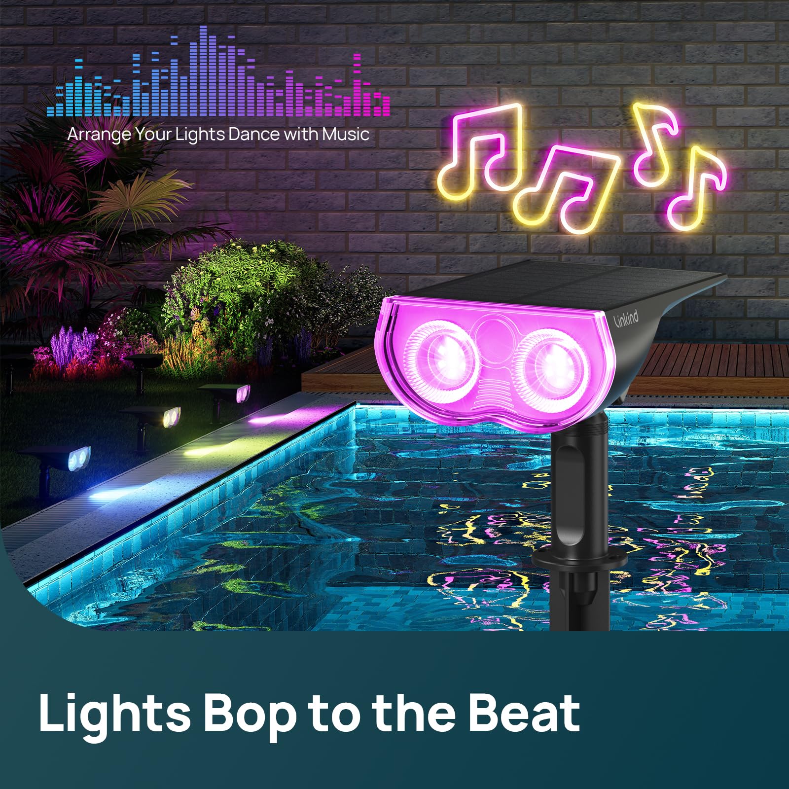 - 【Light Shows and Music Sync】Bring outdoor spaces to life with music sync and light shows. See your outdoor lights dance across your landscape, or pulse to your music, creating stunning visual effects for holidays, events, or seasonal decorations.