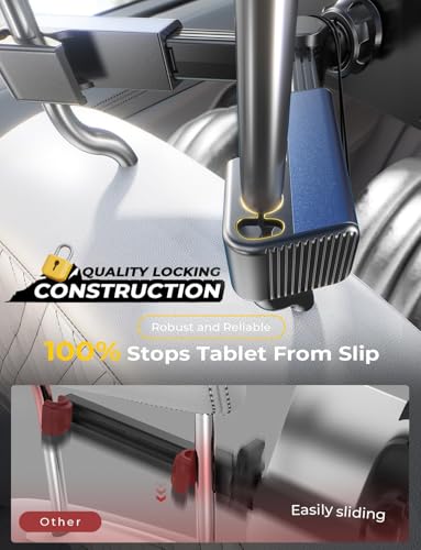 - 【Just stable fits any car】Are you always worried not suitable? This tablet holder for car with R&D patents and innovative structural design, and the back is foldable and retractable. Whether you are traveling by car or changing cars at home, this product can widely adapt to the distance of 1.6-6.9 inches of the car back seat pole, and the shorter back seat or long-distance SUV off-road vehicle, pickup truck, etc. can always be used.