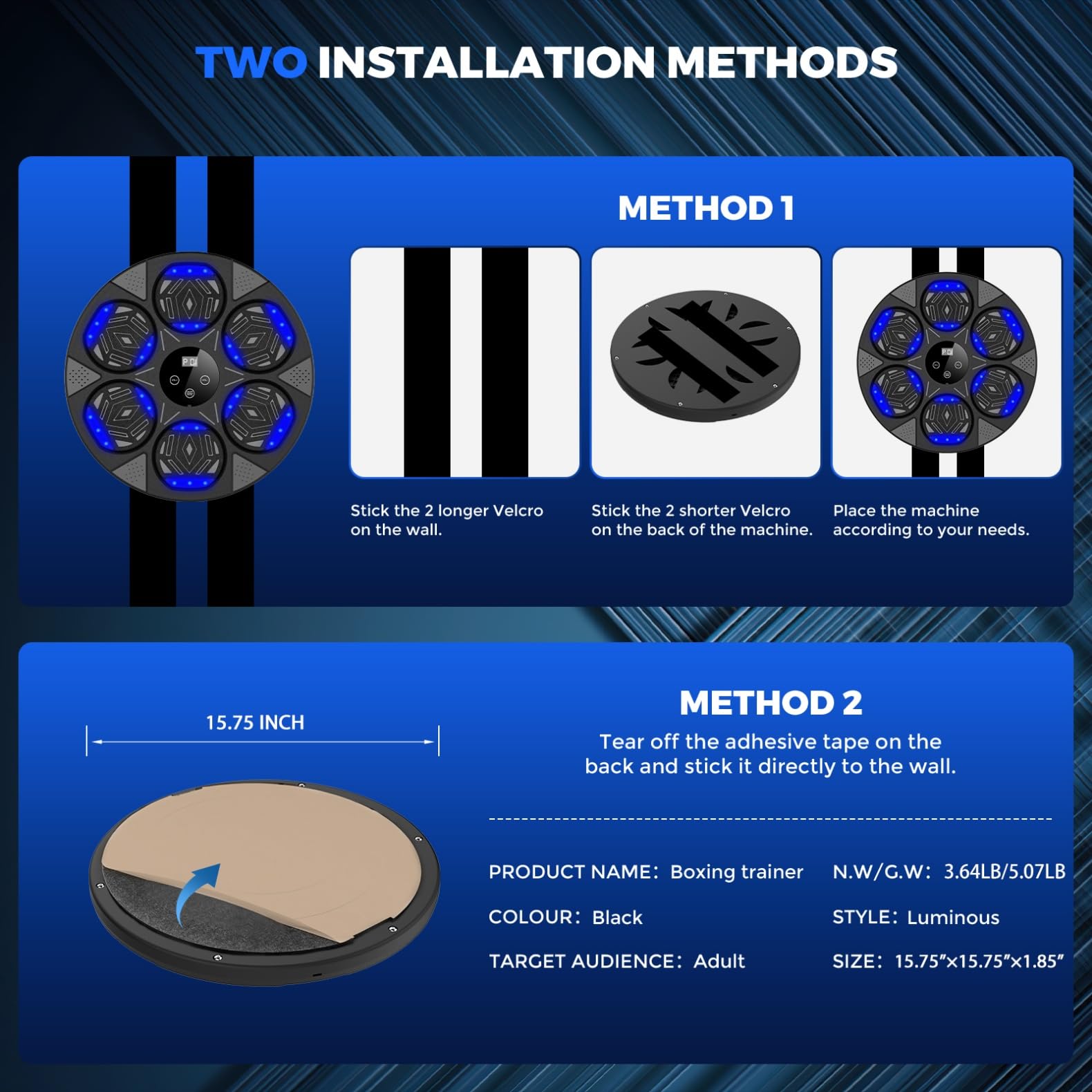 - SIMPLE AND EFFICIENT INSTALLATION PROCESS - This boxing music exercise machine offers flexible mounting options. You can freely adjust the height by velcro. The flexibility saves 90% of installation time and improves the experience of using electronic boxing equipment. No need for additional punching bag accessories.