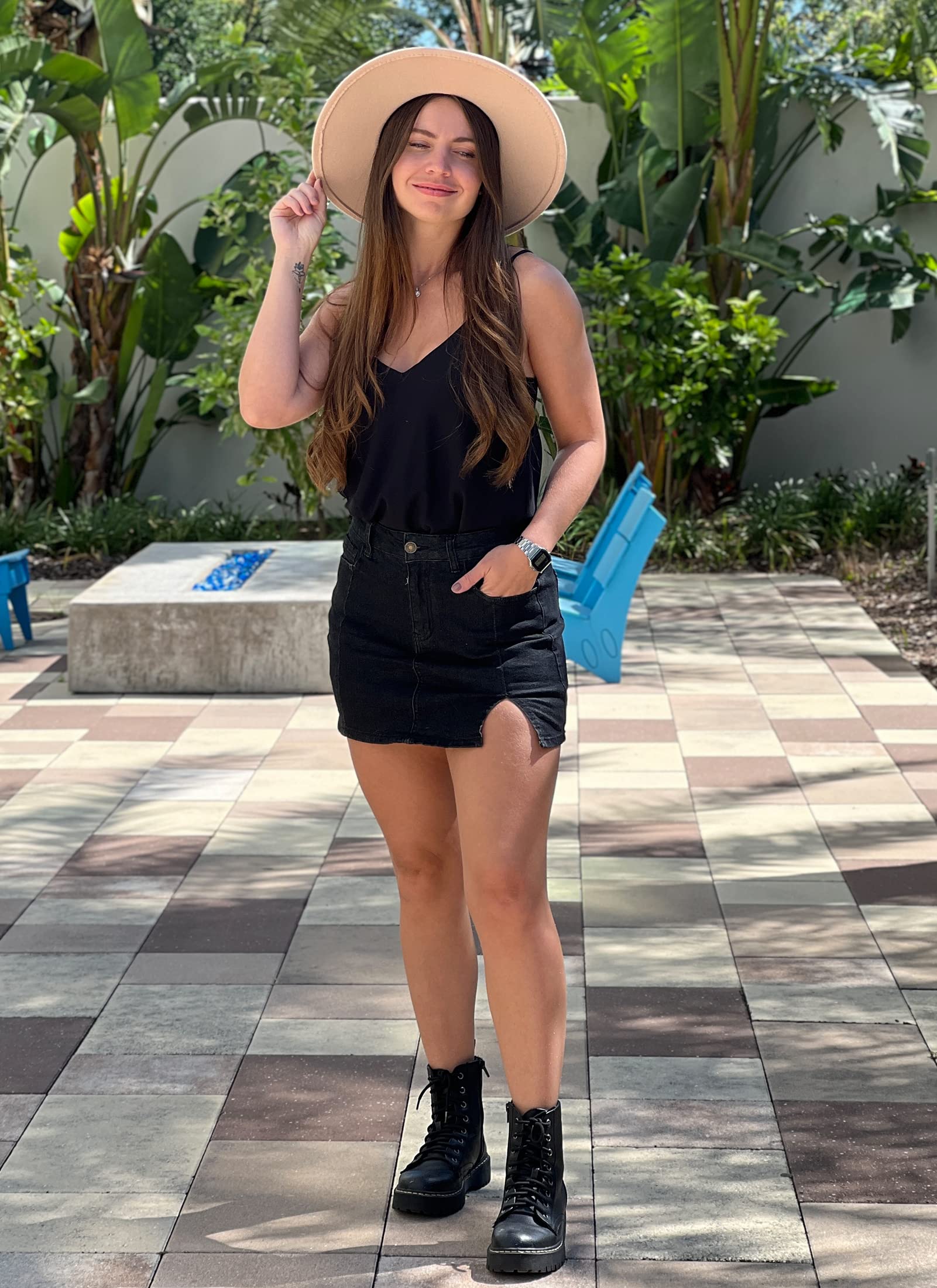 - High waisted mini skirt y2k with slit create a throwback look for your '90s outfits wardrobe. You can style this country club attire women with a floral blouse to add a femmate touch to your daily outfits.