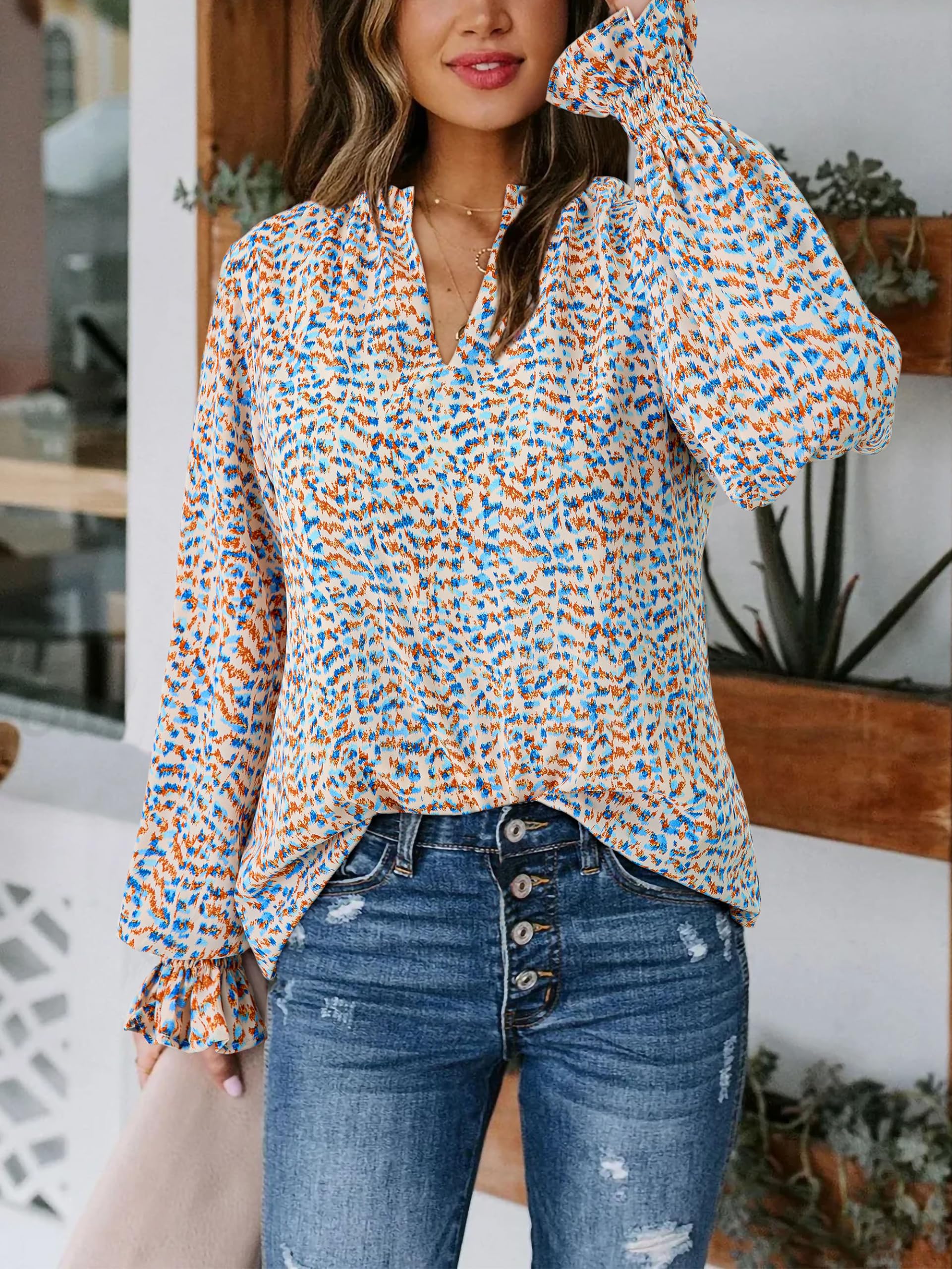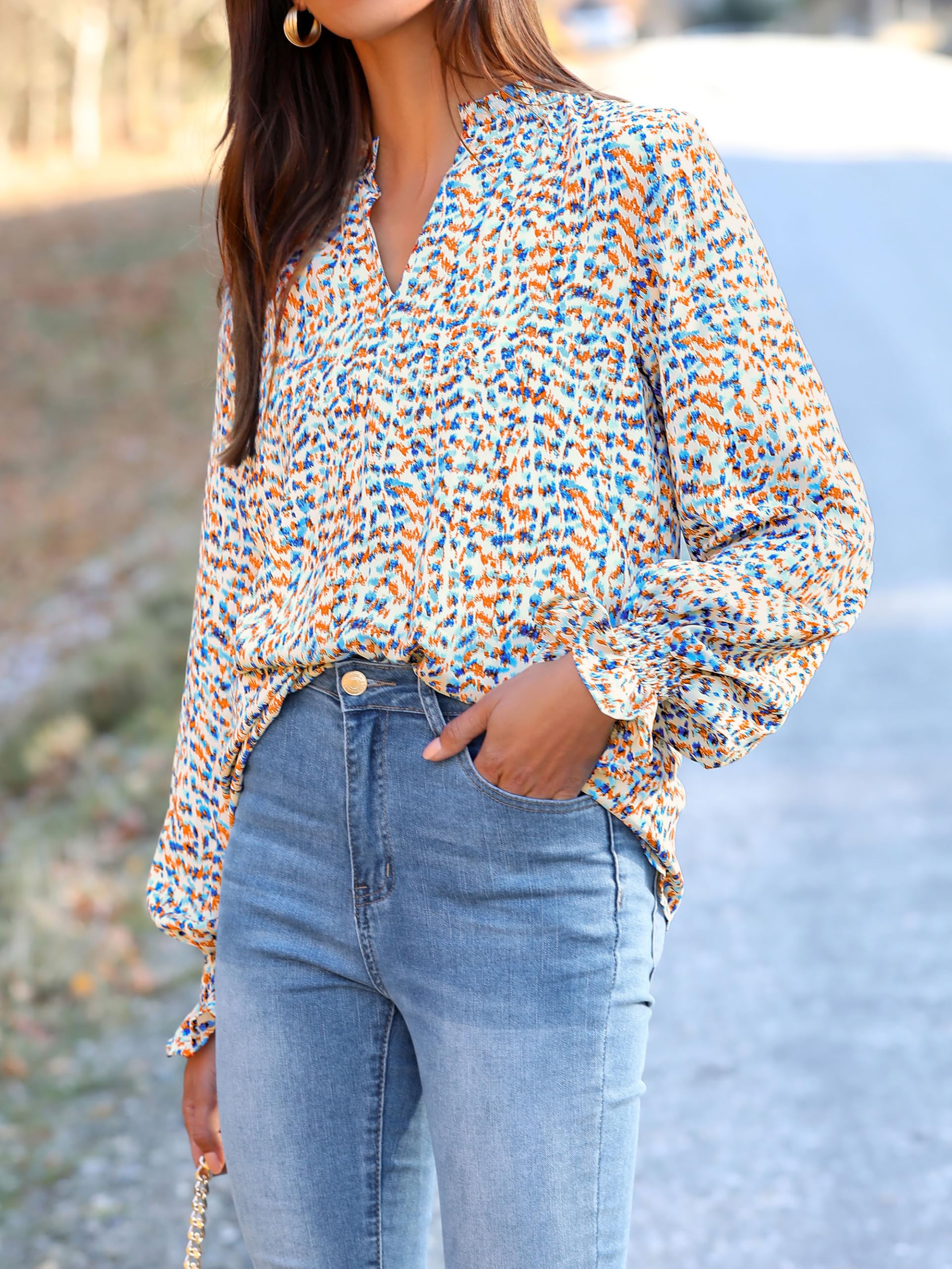 • Design:Womens long sleeve blouse with the v-neckline adds a touch of sophistication. The puffy sleeves and floral design bring a trendy and feminine flair to this classic boho tops, perfect for any casual or semi-formal occasion.