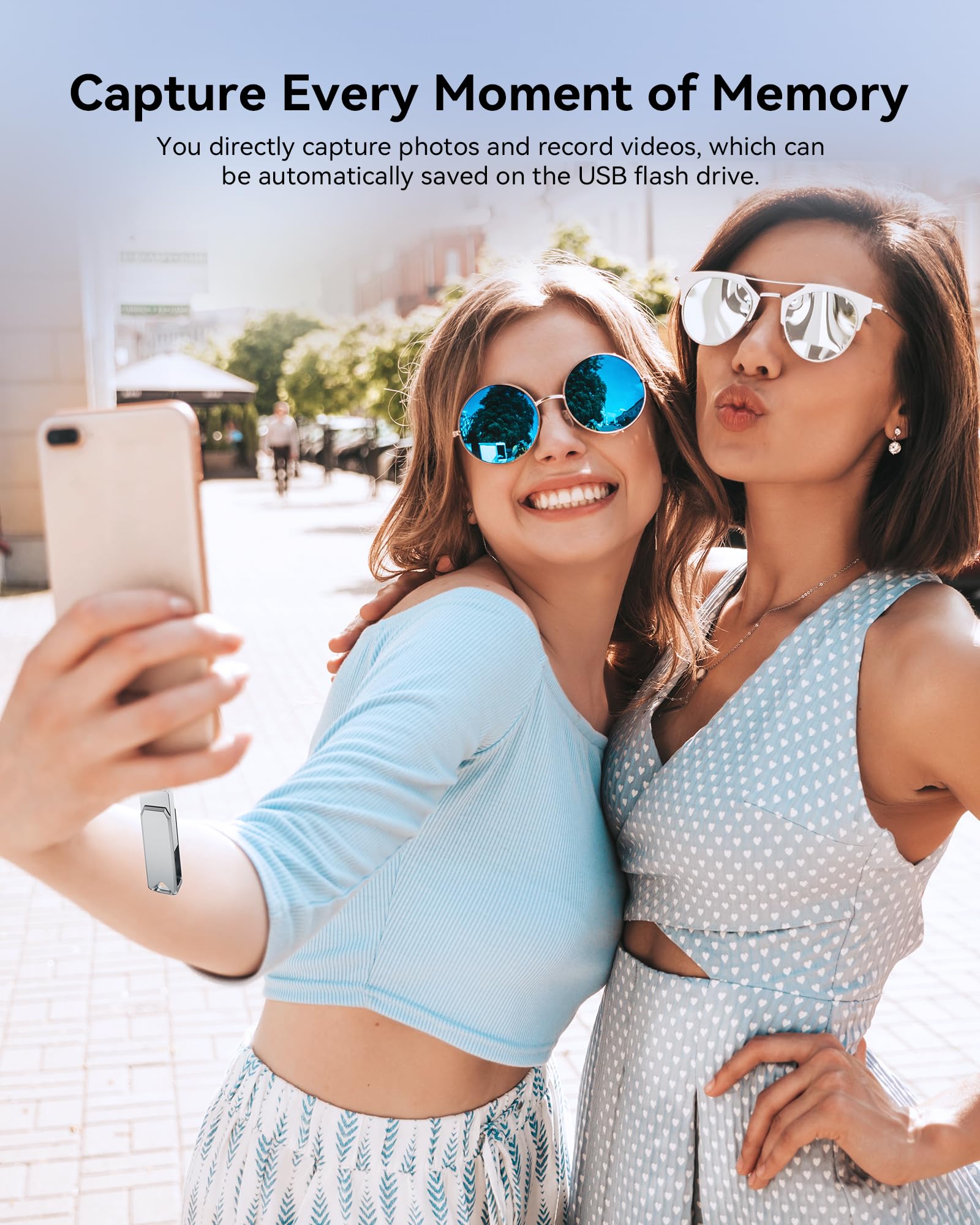 - High-speed one-click backup: The reading speed of the photo stick is up to 80mb/s, and the writing speed is up to 40mb/s, which can quickly back up files/photos/videos and phone books, etc. You can also store photos on the computer through the usb port for double insurance. It's worth mentioning that you can share files to social media (Facebook, Twitter, etc.) directly from the jump drive. Easily share data with family and friends, making entertainment and work more fun!