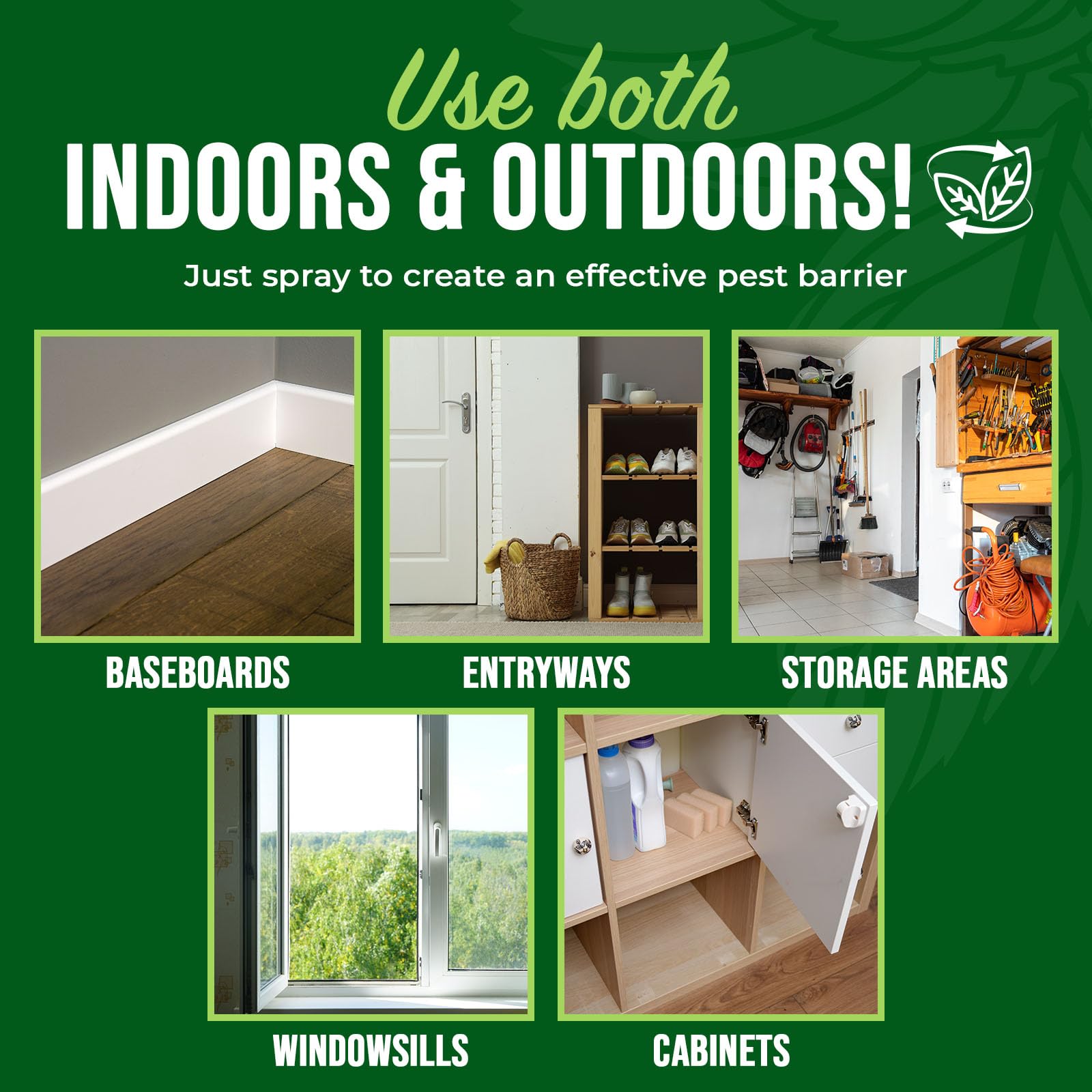 - EFFECTIVE INDOOR & OUTDOOR USE – Designed for versatile application on baseboards, entryways, patios, and other areas. Helps repel insects from kitchens, bathrooms, living spaces, and more—without staining surfaces.