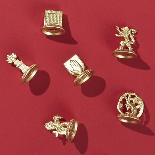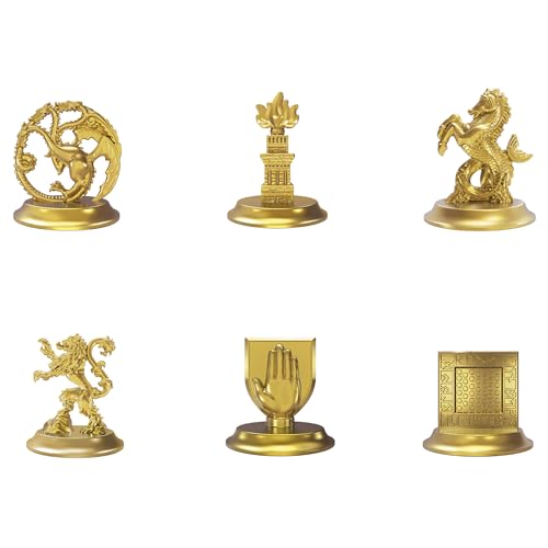 - 6 GOLDEN ZINC TOKENS: Includes 6 golden game tokens: House Targaryen, House Hightower, House Velaryon, House Lannister, House Strong, and House Royce. Who will you pledge loyalty to.