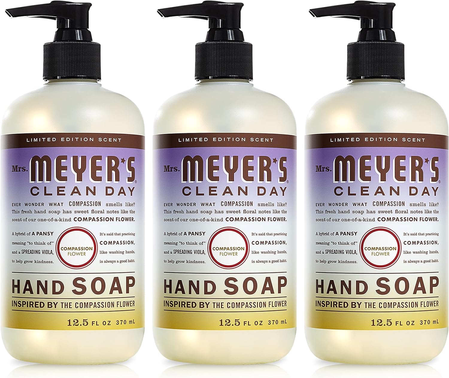MRS. MEYER'S CLEAN DAY Hand Soap, Made with Essential Oils, Compassion Flower, 12.5 fl. oz - Pack Of 3