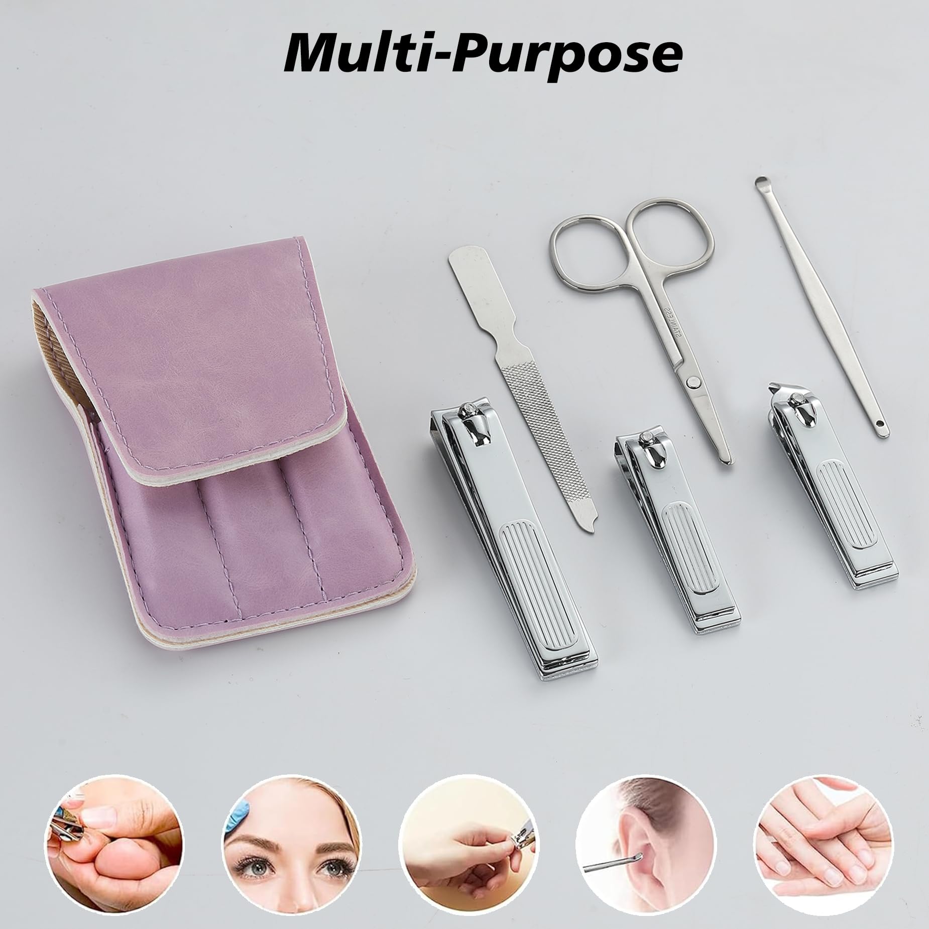Nail Clipper Set Gifts for Women, 6 Pcs Case Fingernail Clipper Christmas Stocking Stuffers for Adults (Purple)