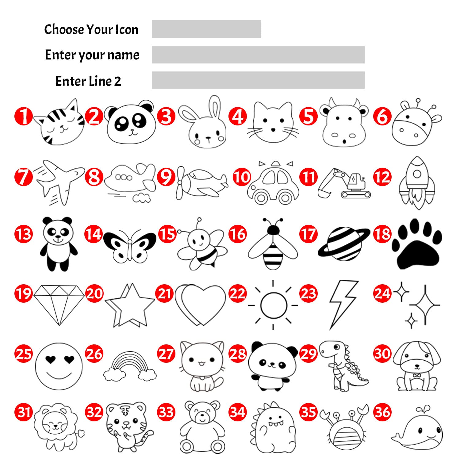 - How To Customized: Click"Customize now"→Choose the font you want→Choose the Icon→Write down the text you want in line 1,2,. When finish, click the "Add to cart".Then get a cute name stamp!