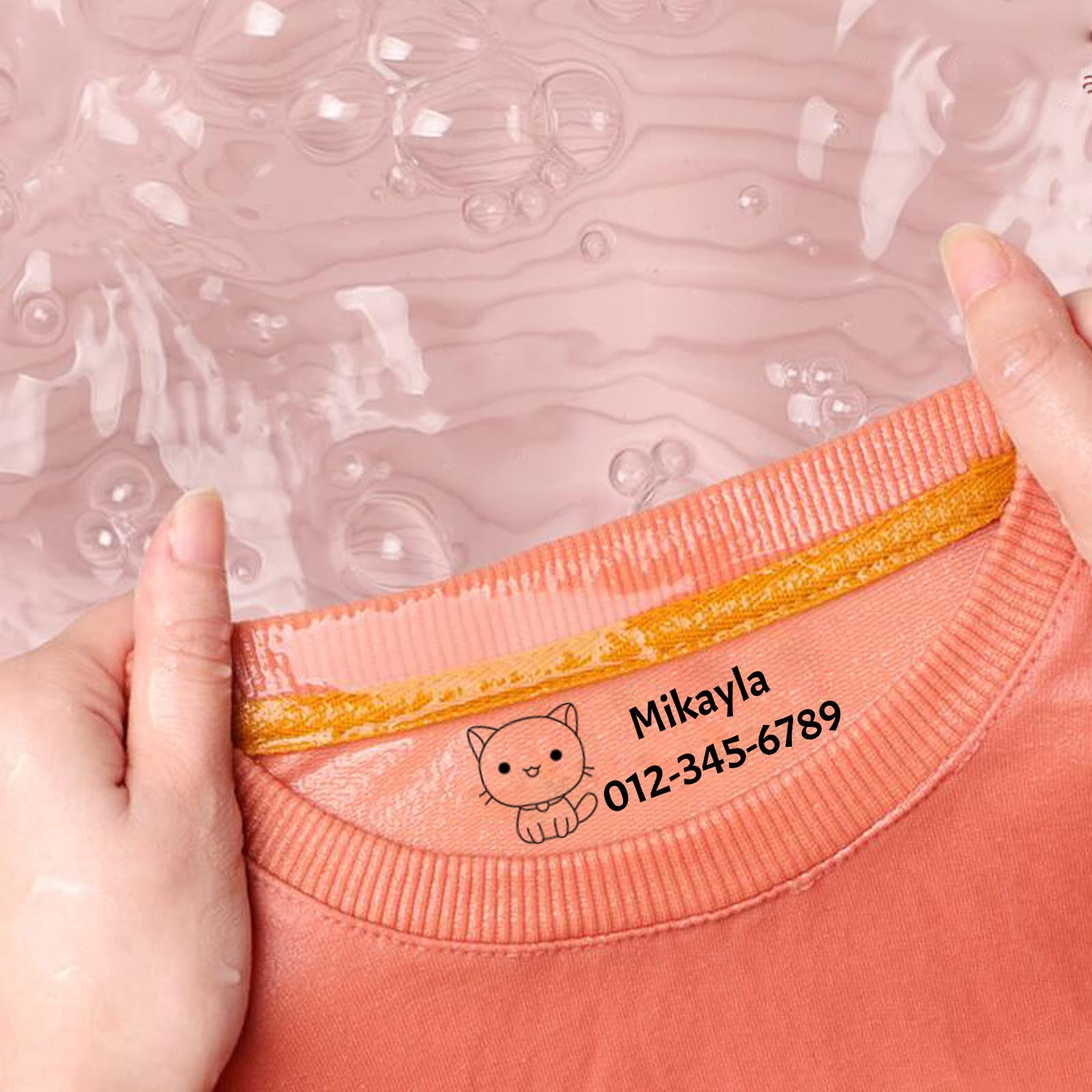 - Say goodbye to the troublesome way of ironing and sewing labels,clothing marking can be done easily with just one tap,Our unique stamp is designed with a waterproof attribute, it can be Water wash or dry cleaned, and the ink will never fade