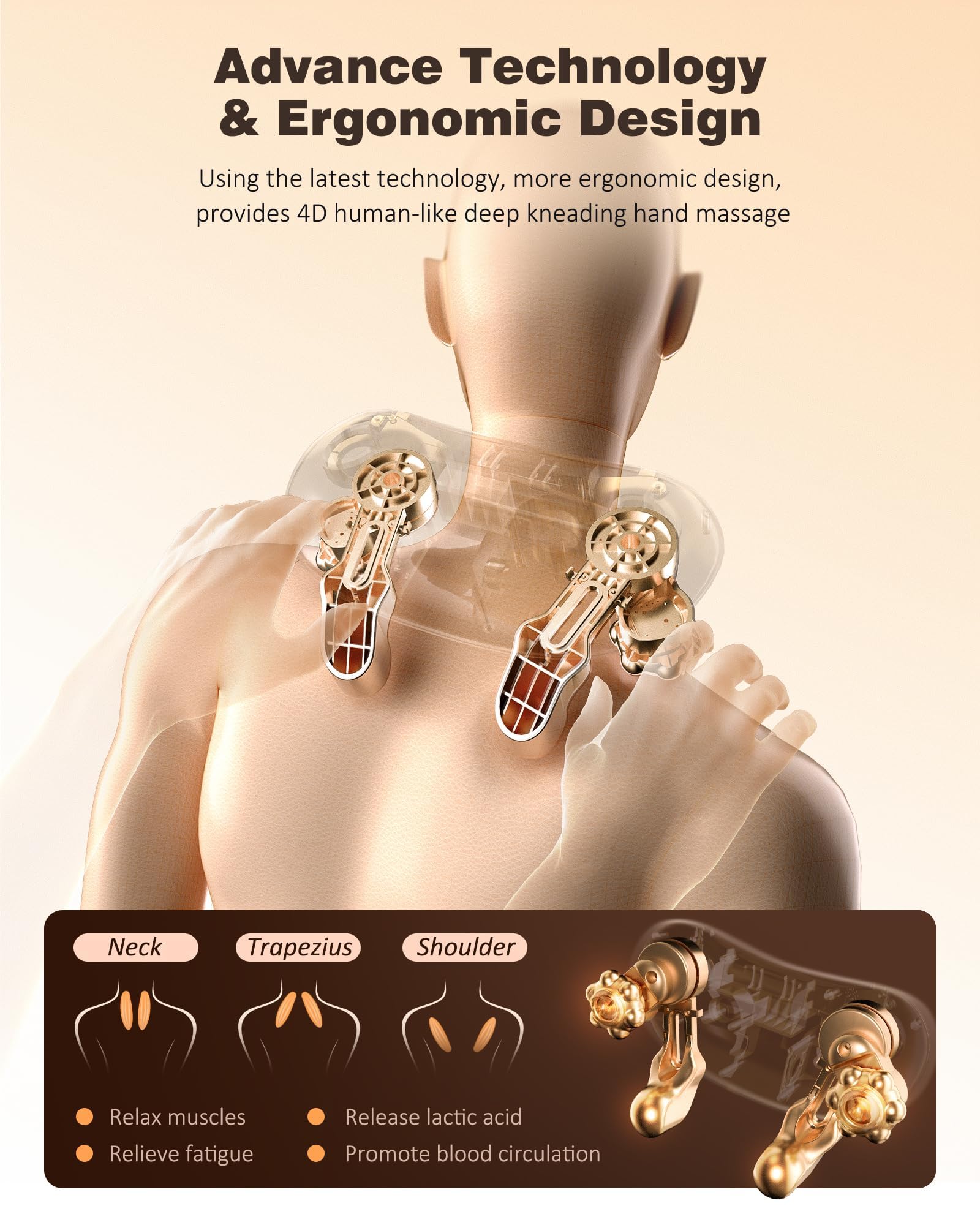 - Deep Kneading Massage:Using the latest technology and more ergonomic design, KNQZE Neck and Shoulder massager provides 4D human-like deep kneading hand massage, relax your tense body muscle pain, ease neck stiffness, eliminate cervical fatigue, and relax yourself after a long day work.