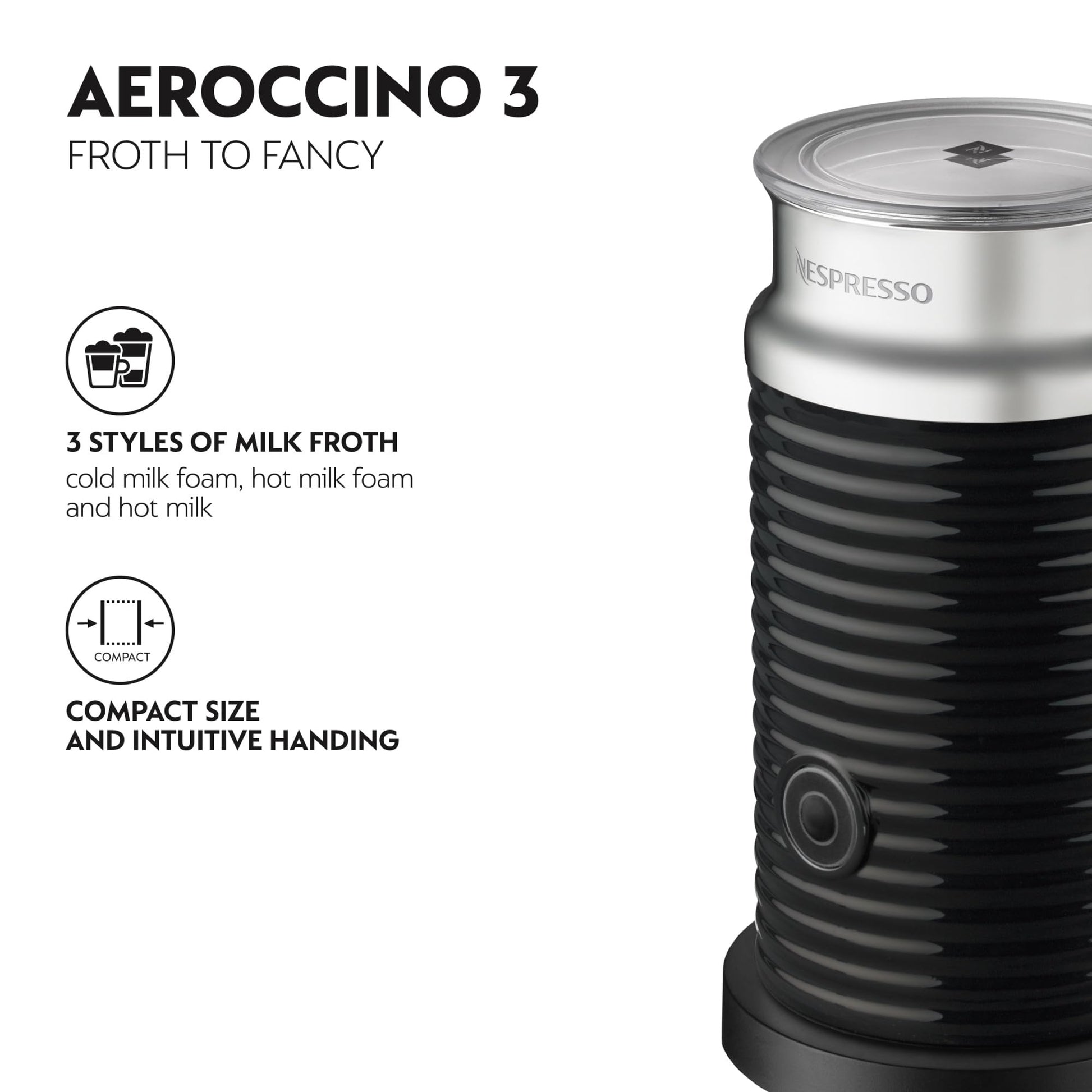 - AEROCCINO MILK FROTHER INCLUDED: The Nespresso Aeroccino3 provides smooth hot or cold milk frother for your cappuccinos and lattes in a few seconds with one touch