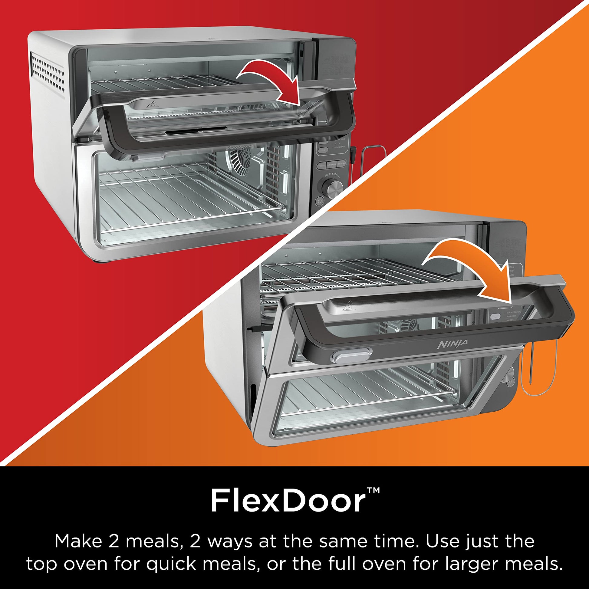 Ninja DCT451 12-in-1 Smart Double Oven with FlexDoor, Thermometer, FlavorSeal, Smart Finish, Rapid Top Convection and Air Fry Bottom , Stainless Steel