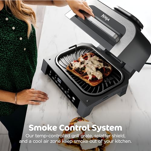 - NINJA FOODI SMART XL GRILL: Updated, sleek design with the same functions & benefits. Indoor countertop Grill and Air Fryer with the Smart Cook System & Thermometer.