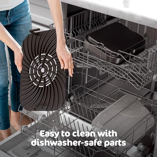 - EASY-TO-CLEAN: The ceramic-coated, removable grill grate, crisper basket, and cooking pot are all dishwasher safe, easy to clean, and PTFE/PFOA-free.