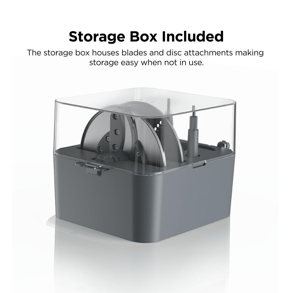 - SAFE STORAGE: Safely store discs and blades in the included storage box.