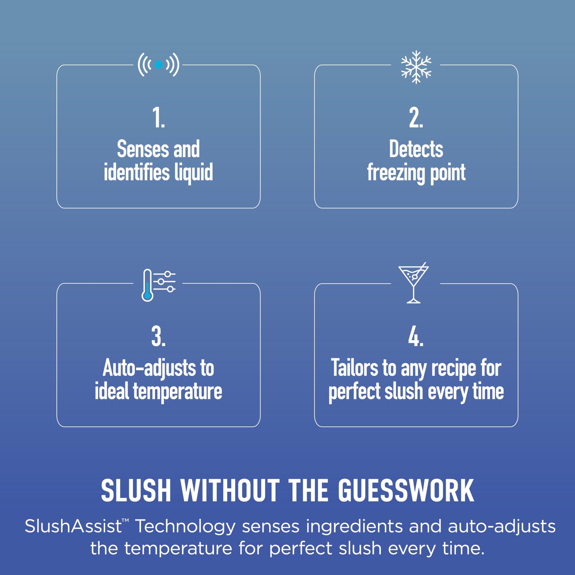 - SMARTER SLUSHING WITH ZERO GUESSWORK: NEW SlushAssist Technology senses ingredients and auto-adjusts temperature for perfect slush every time.
