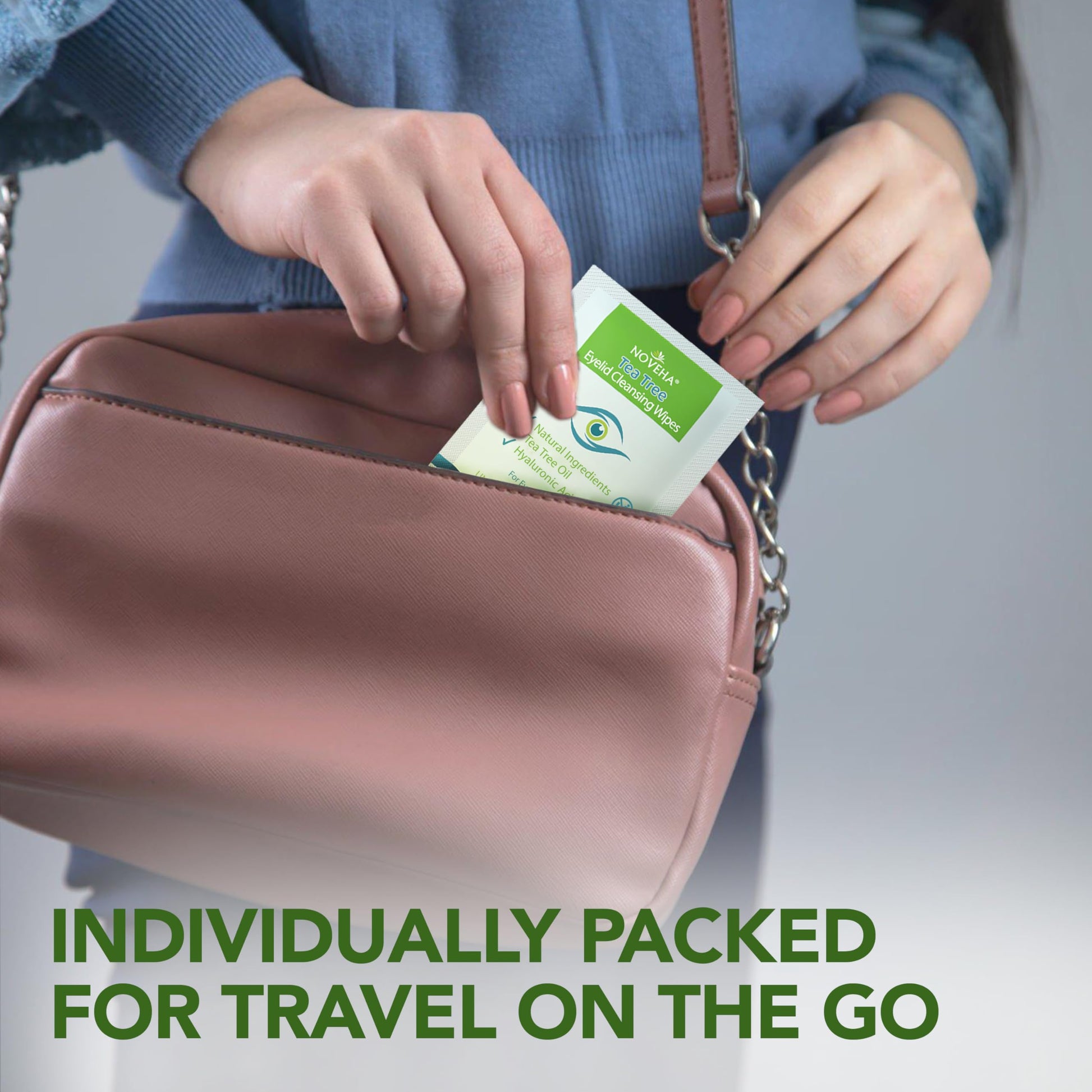 NOVEHA 60PCs Tea Tree Oil Eyelid & Lash Wipes | With Hyaluronic Acid, Green Tea & Chamomile For Blepharitis, Itchy & Stye Eyes, Individually Wrapped, Natural Eyelash Makeup Remover & Daily Cleanser