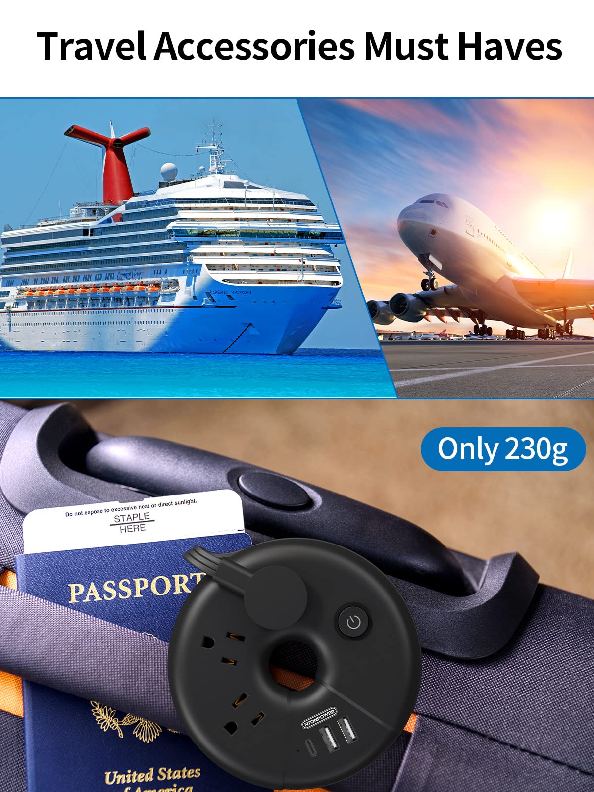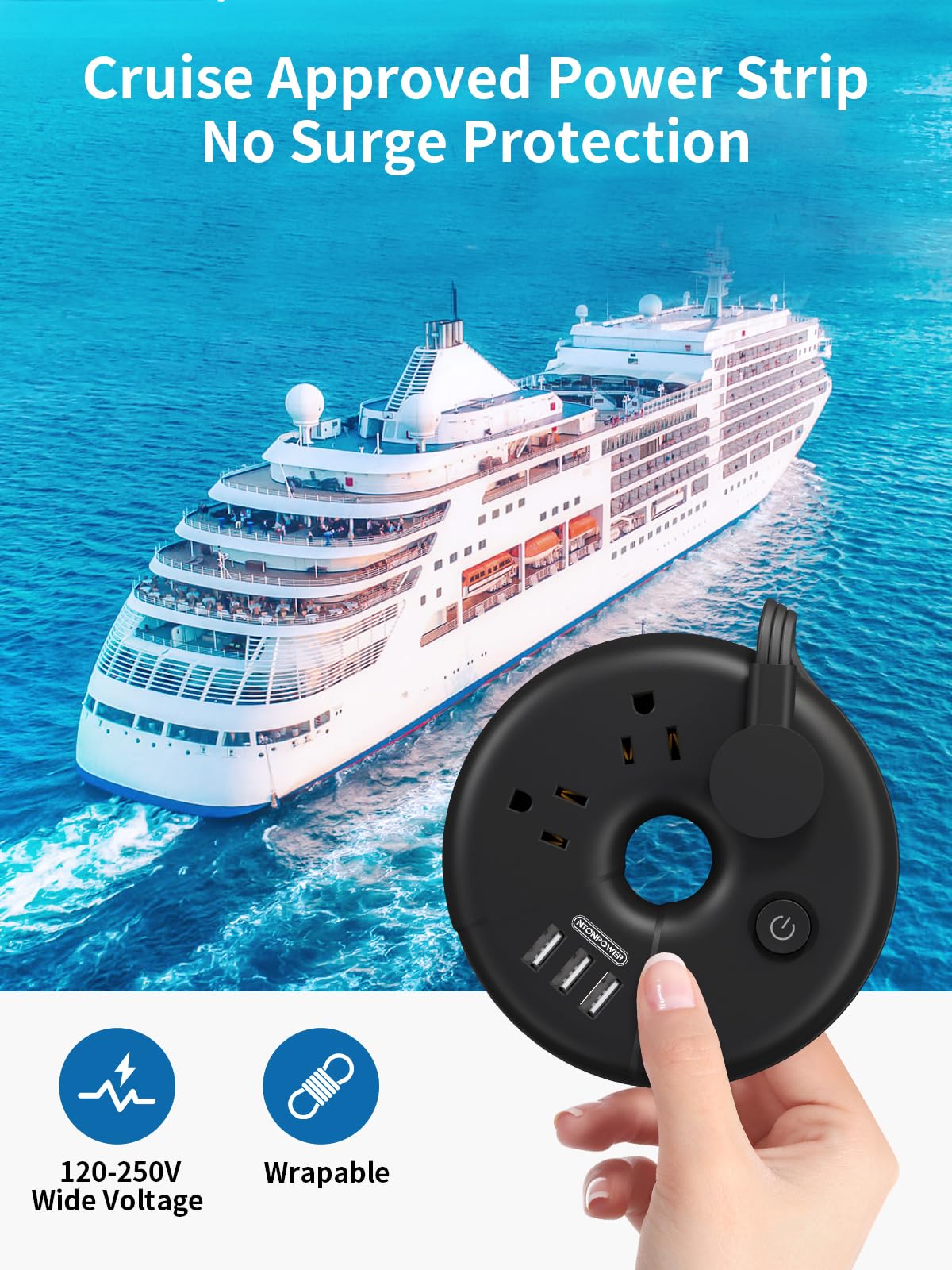 - 【Cruise Ship Essentials】 Most cruise ship cabins only have one outlet, which is fatal for cruise travelers who like to carry multiple electronic devices. Our cruise ship socket can help you solve the problem of insufficient outlets on the cruise ship, and it is cruise approved power strip. Note: This travel power strip does not have surge protection, so you don’t have to worry about it being confiscated by the cruise company.