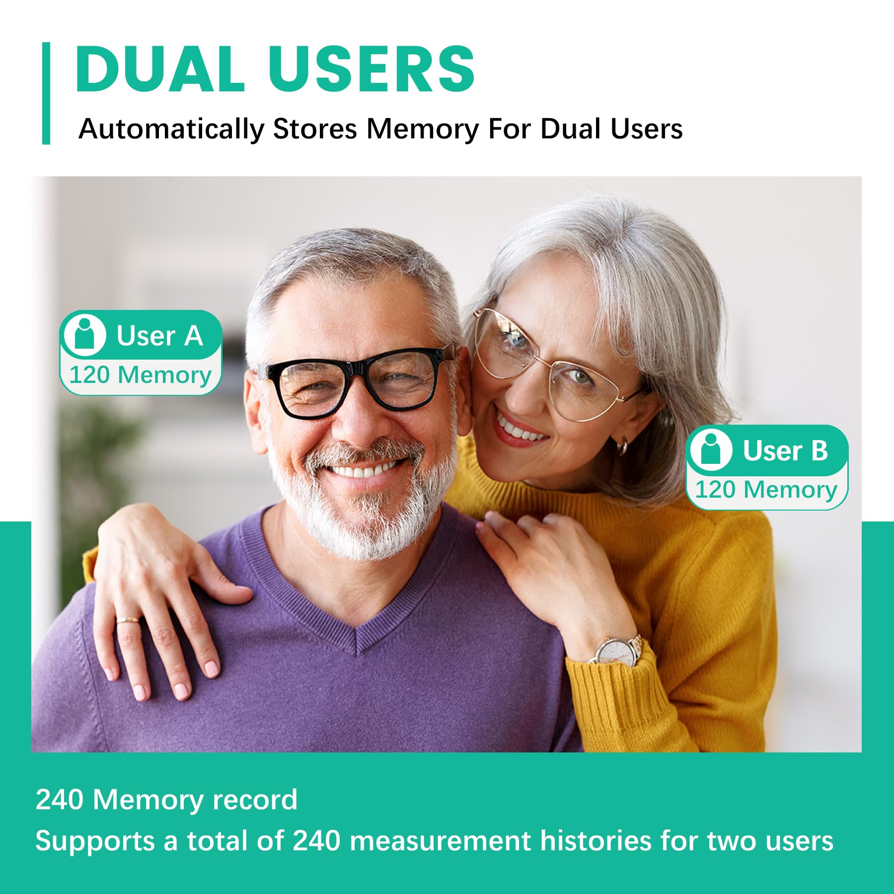 - Stores Up to 240 Readings: Supports two users, storing 120 readings per user; this feature makes it easy to track and monitor blood pressure trends for you and your family over time