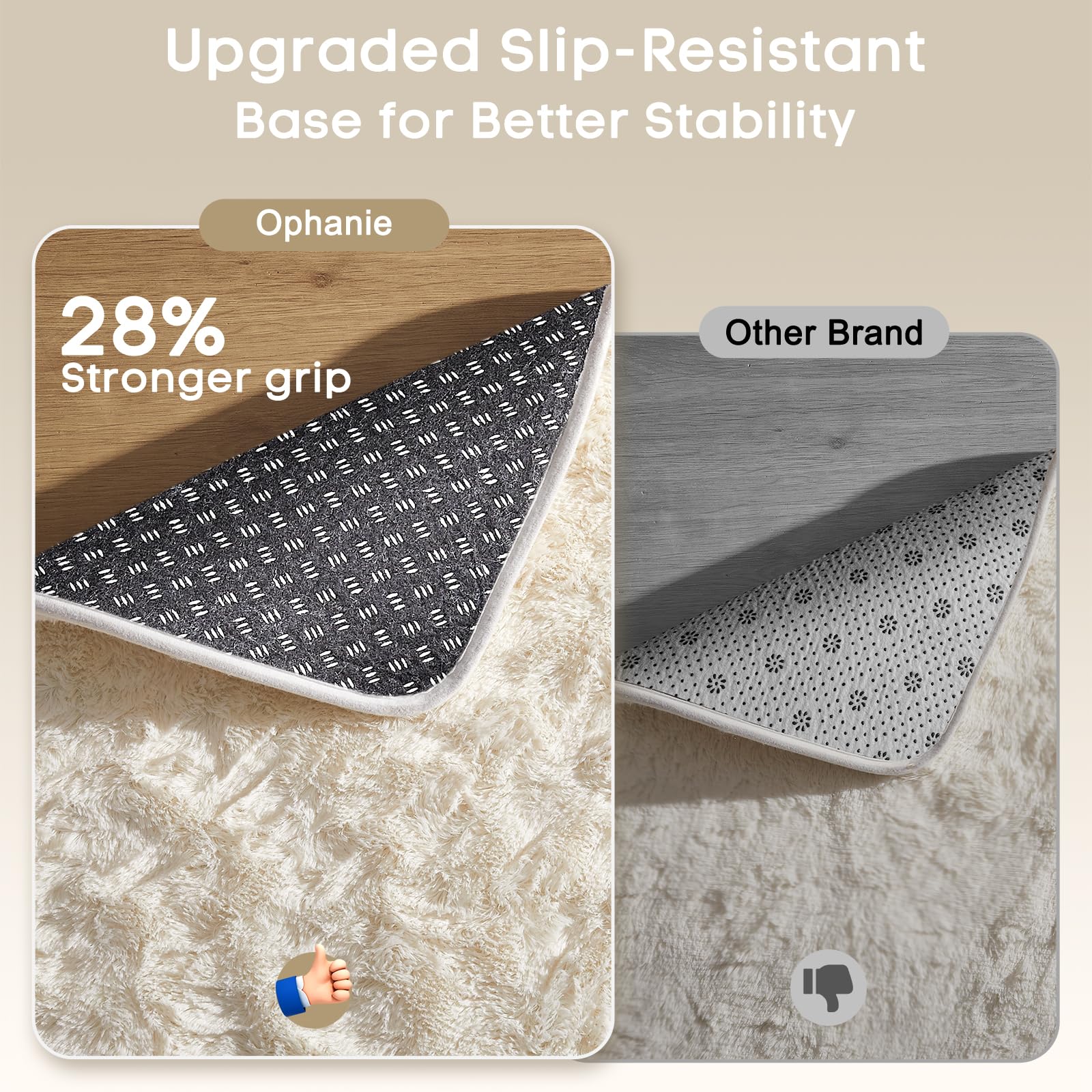 - Ultra Soft & Non-slip: Featuring a shaggy carpet surface, the Ophanie soft area rug is highly soft with a high-density sponge interlayer. This rug effectively reduces shedding, and the non-slip bottom with small, durable anti-slip dots enhances friction to prevent sliding.