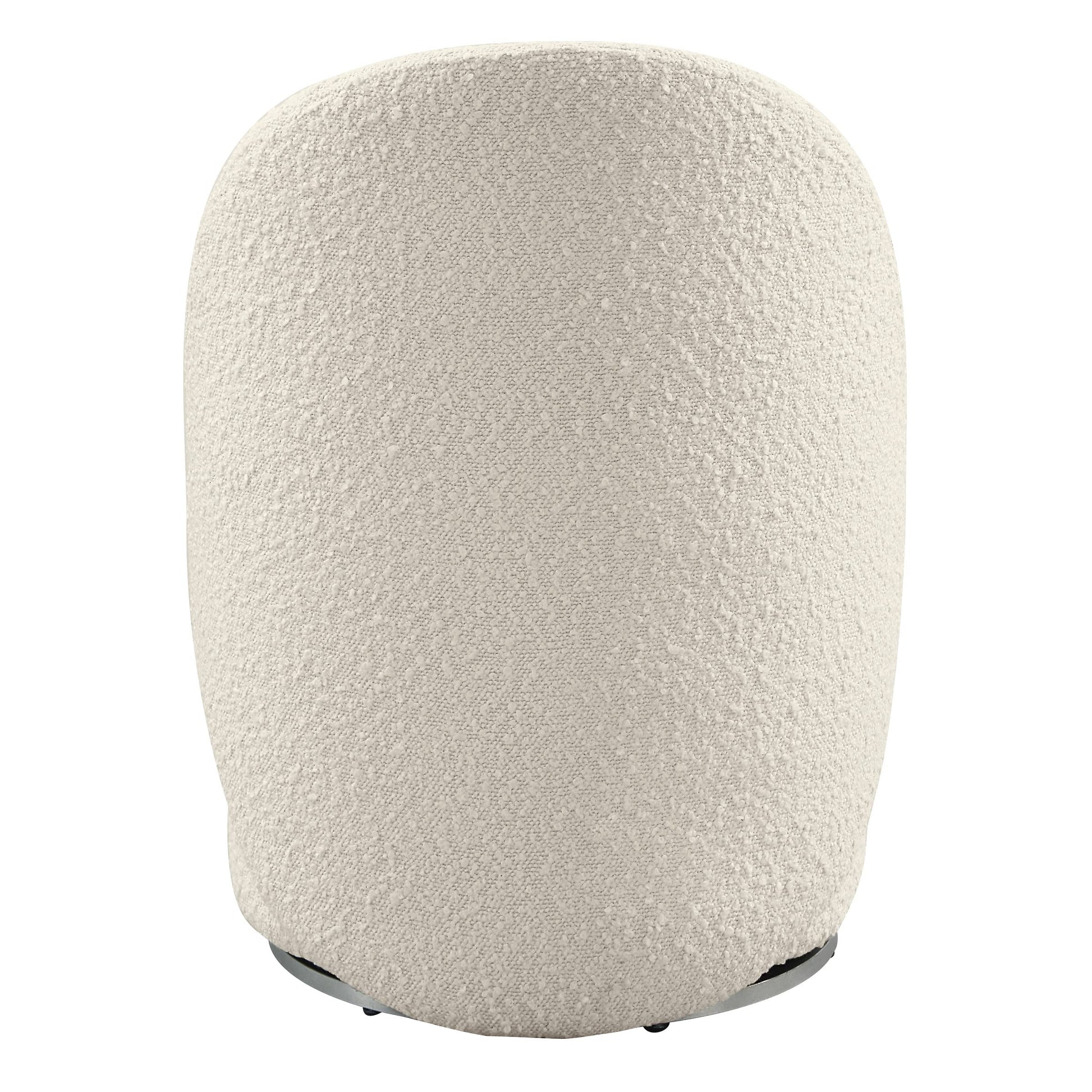 Details: Indulge in the chic, modern cottage style with our swivel vanity chair. Covered in trending cream boucle fabric, adding texture and charm to your vanity. A 360 degree swivel keeps this small slipper chair a useful and sweet seating option. Add glamour to your on-suite primary bedroom, walk-in closet, or guestroom, offering a place to sit, put shoes on, relax, and make your beauty routine sublime. Comes fully assembled.