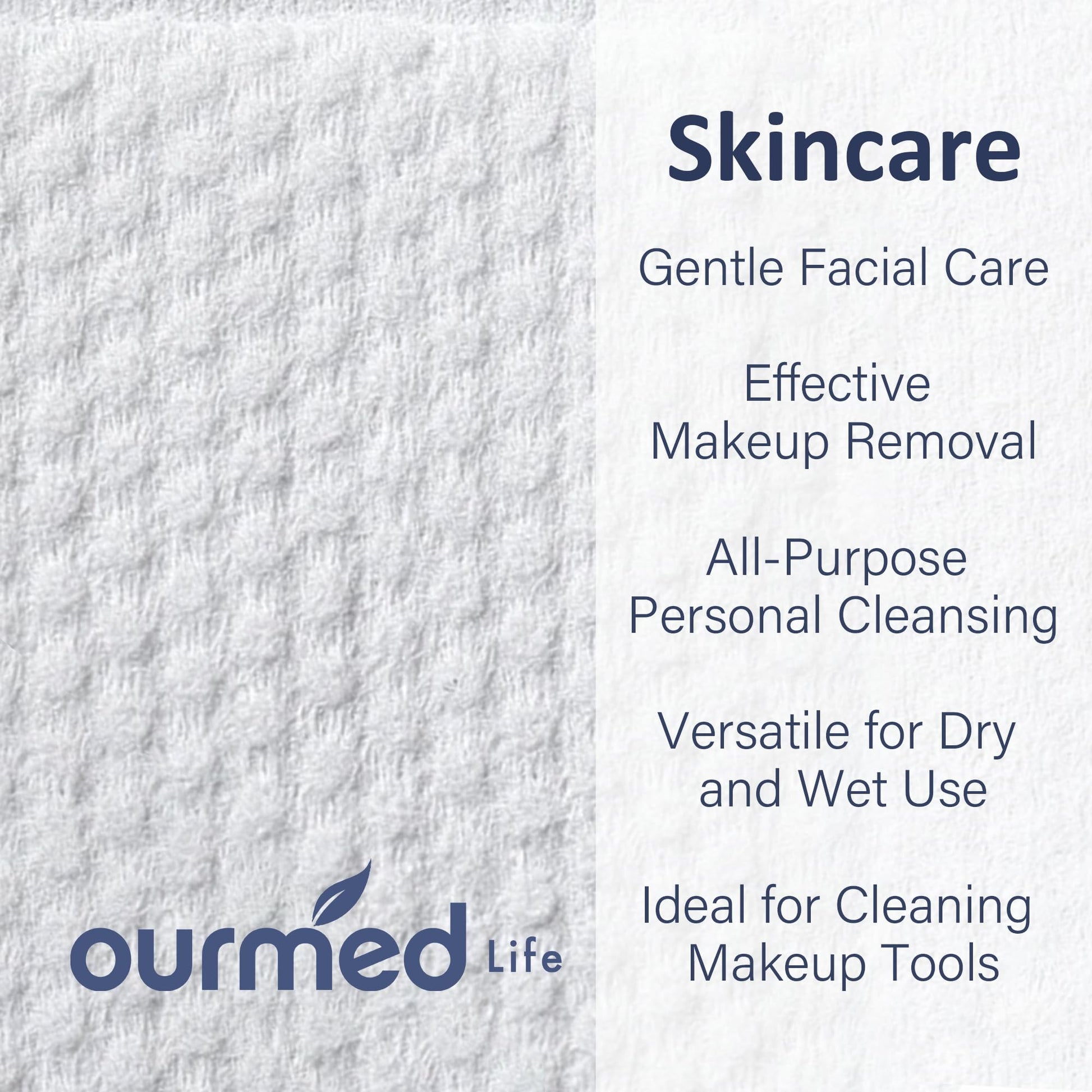 Ourmed Life Face Towels, Disposable Biodegradable Clean Facial Towels for Sensitive Skin, Lint- free Face Cloths for Makeup Remover, Skincare and Women Cleaning, Dry Wipes,100 Count Dot Texture