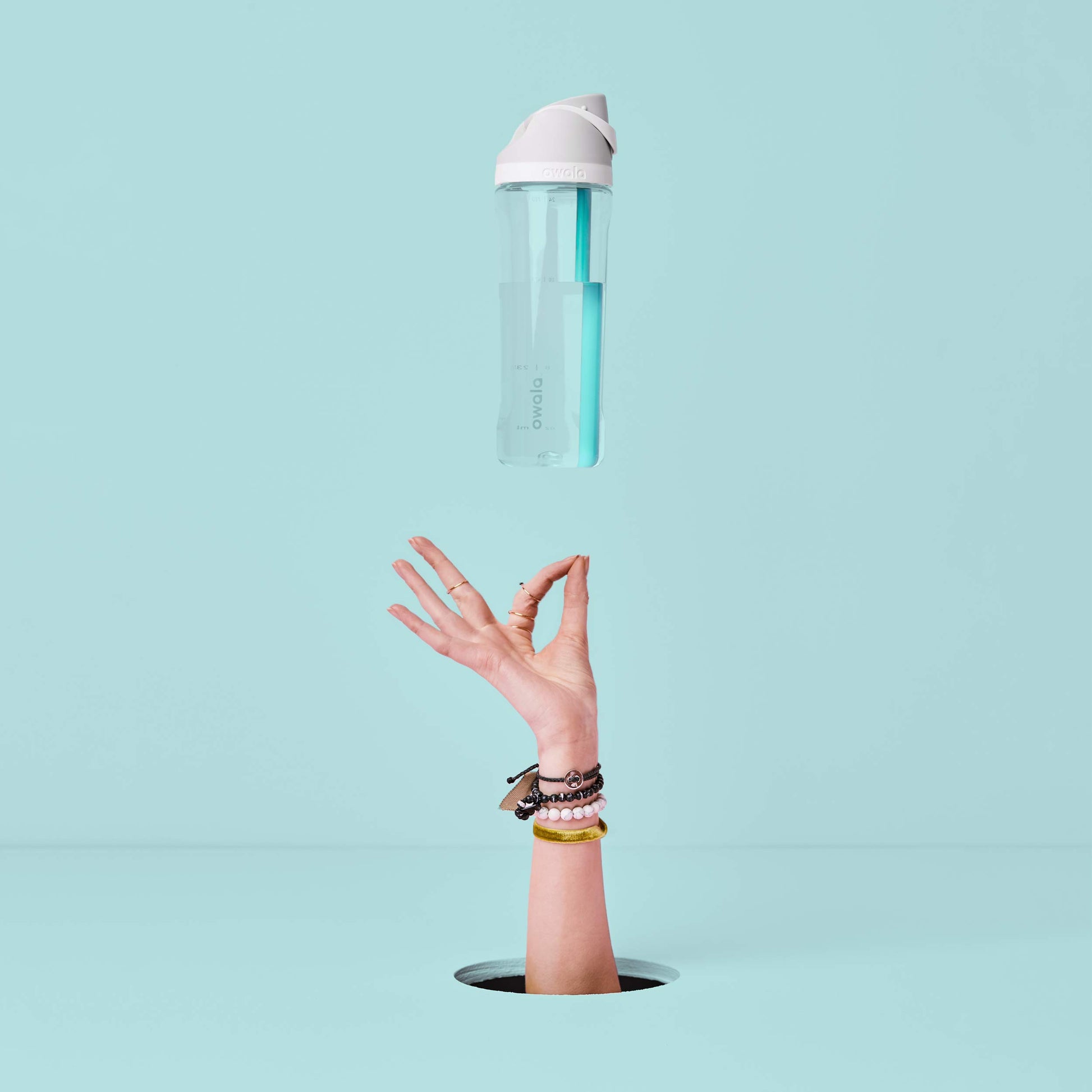 Details: The Owala FreeSip Tritan Water Bottle with Locking Push-Button Lid easily tackles every thirst. With a built-in, easy-clean straw and a wide-mouth opening, the FreeSip reusable bottle is designed for drinking two different ways: sipping upright through the straw or tilting back to swig from the wide-mouth spout opening. Add in a push-to-open lid and playful colors, and staying hydrated has never been simpler—or more fun. Additional features include a carry loop that doubles as a lock, a cup holder-friendly base, and a wide opening for easy cleaning and adding ice. The Owala FreeSip Tritan Water Bottle with Locking Push-Button Lid has a capacity of 25 ounces. Made from BPA- and phthalate-free, stain and odor-resistant durable Eastman Tritan plastic. Top-rack dishwasher safe..
