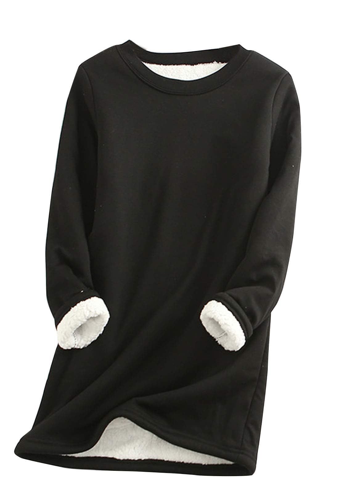 PEHMEA Women's Winter Warm Sherpa Lined Fleece Sweatshirt Crewneck Sport Pullover Loungewear Tops(Black-XL)