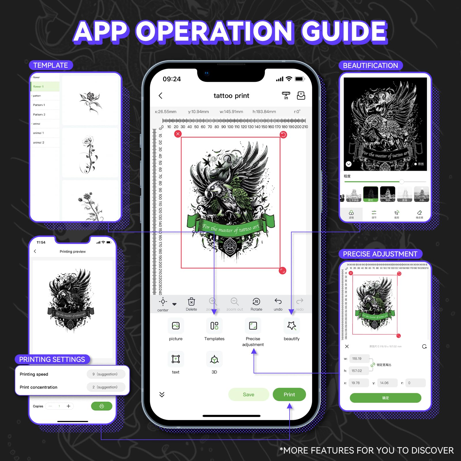 • Portable Design: Compact and lightweight , the tattoo printer is perfect for on-the-go artists, fitting easily into your kit.