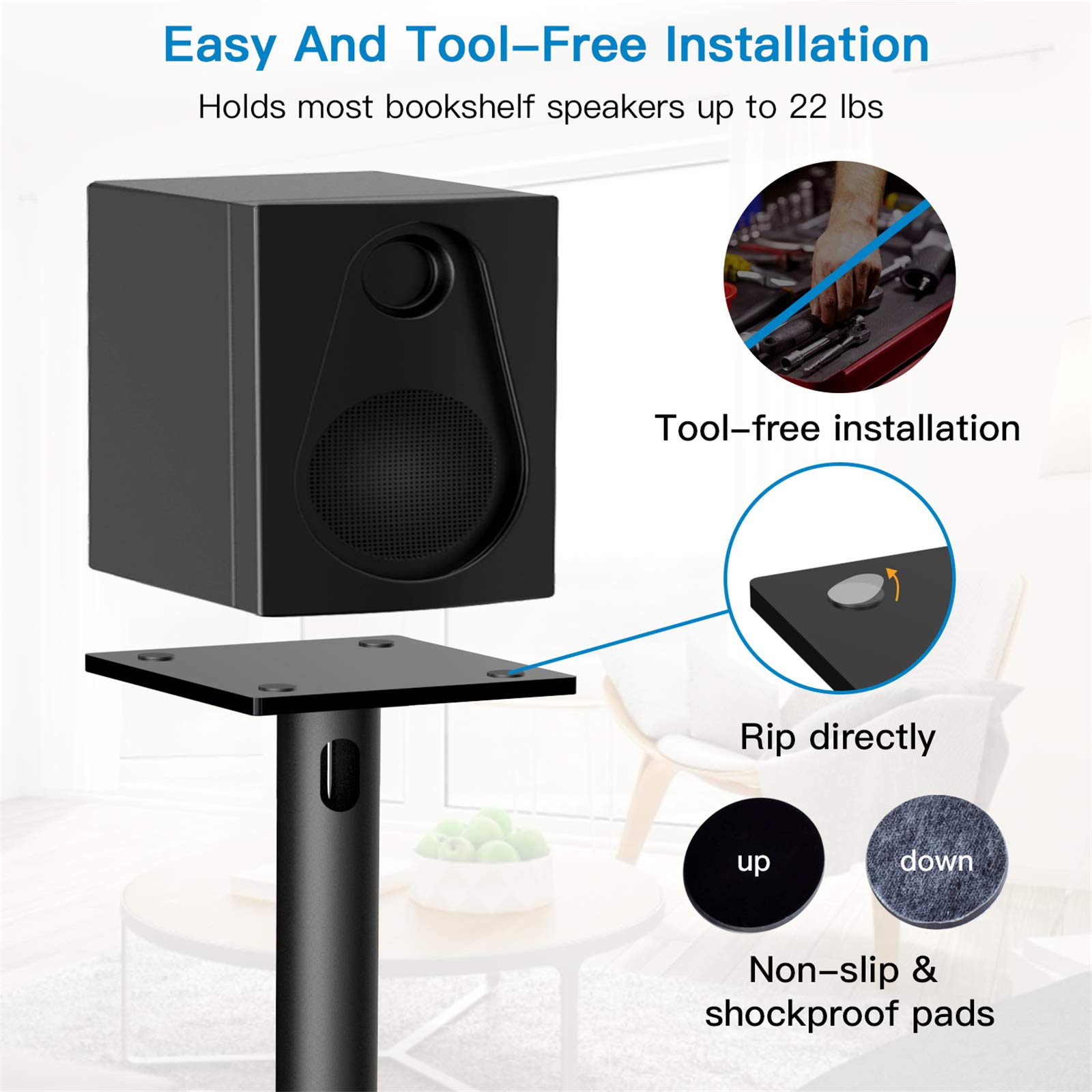 - 【 EASY TO INSTALL】Speakers stands is tool-free assembly. In a simple four-step operation, speakers can be placed directly on the stands. Our experts will reply within 24 hours if you have questions or problems.