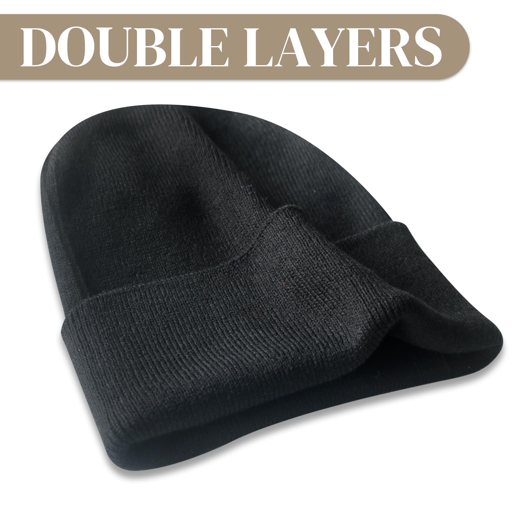 - KEEP WARM: Double layers knitted beanie will keep your head warm all winter long. You can pull the cuff of this beanies hat down to cover your ears for added warmth
