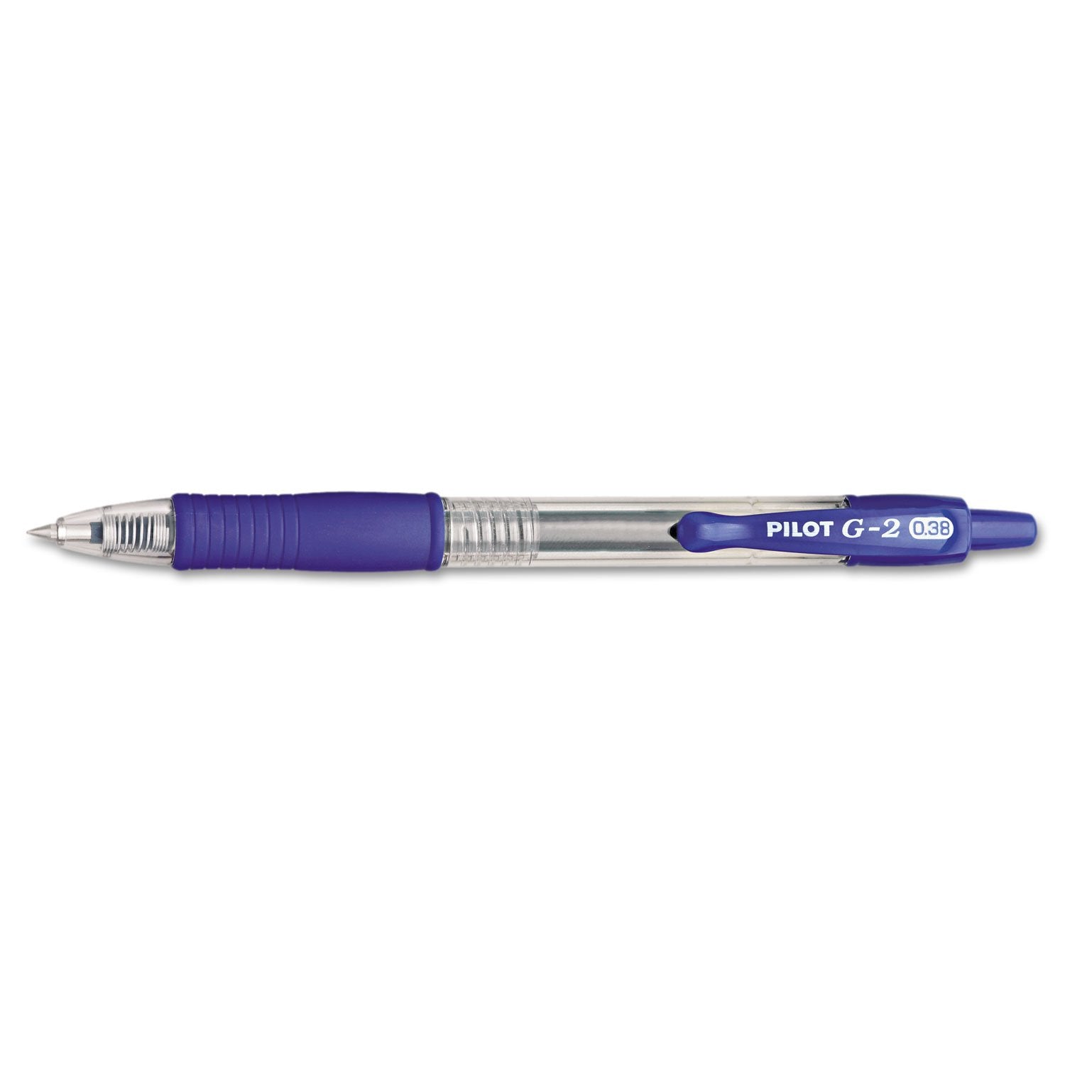 Details: From taking notes to journaling or drawing, G2 Gel Roller pens keep the ink and your ideas flowing. These long-lasting pens come in many color options and 4 tip sizes, so it's easy to find one that caters to your writing needs and personal style. The quick-drying ink prevents smears and smudges, ensuring your work is neat and clear. Create masterpieces of writing or art with these smooth-flowing gel pens that deliver vivid and clear lines. Archival-safe and acid-free blue ink is formulated to be long-lasting and fade-resistant, ensuring your documents last for a long time. The 0.38 mm pen point size offers finer strokes, helping you create intricate details, write in smaller spaces, and achieve a higher level of accuracy. Thanks to the comfortable rubber grip, you can tackle lengthy writing projects with ease. Pilot's G2 line blends smooth writing with long-lasting ink, precision and comfort for an exceptional writing experience.