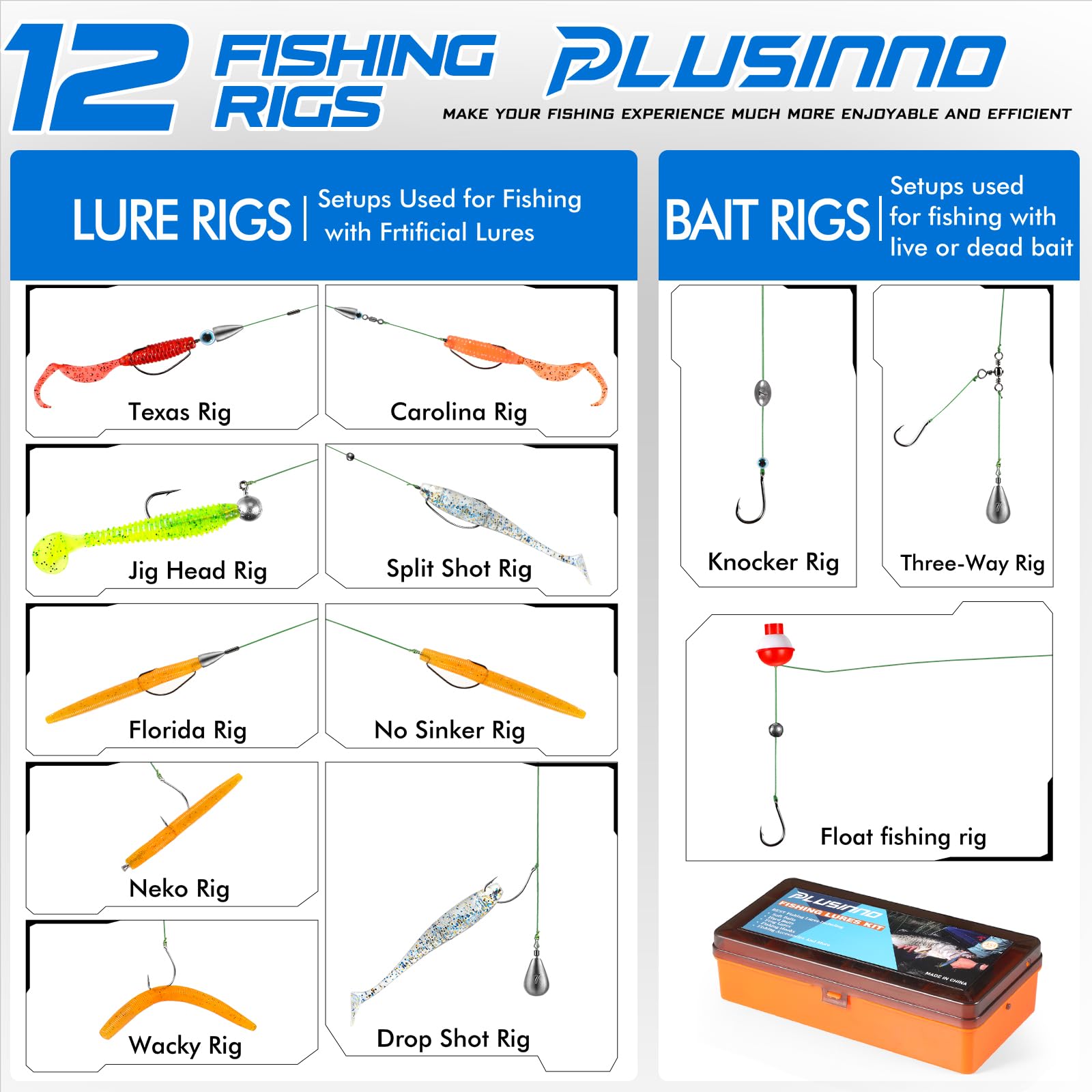 - 【Versatile Fishing Tackle Kit】 - Designed for beginners and seasoned anglers! Featuring 12 Fishing Rigs, including 9 Lure Fishing Rigs and 3 Bait Fishing Rigs, this Multifunctional tackle box is the 2023 Upgraded fishing tackle for enhanced performance. Whether you're into bass trout fishing or other freshwater fishing, this 353pcs fishing lures has everything you need in one convenient box. Enjoy more fun and excitement in your fishing afternoons with PLUSINNO!