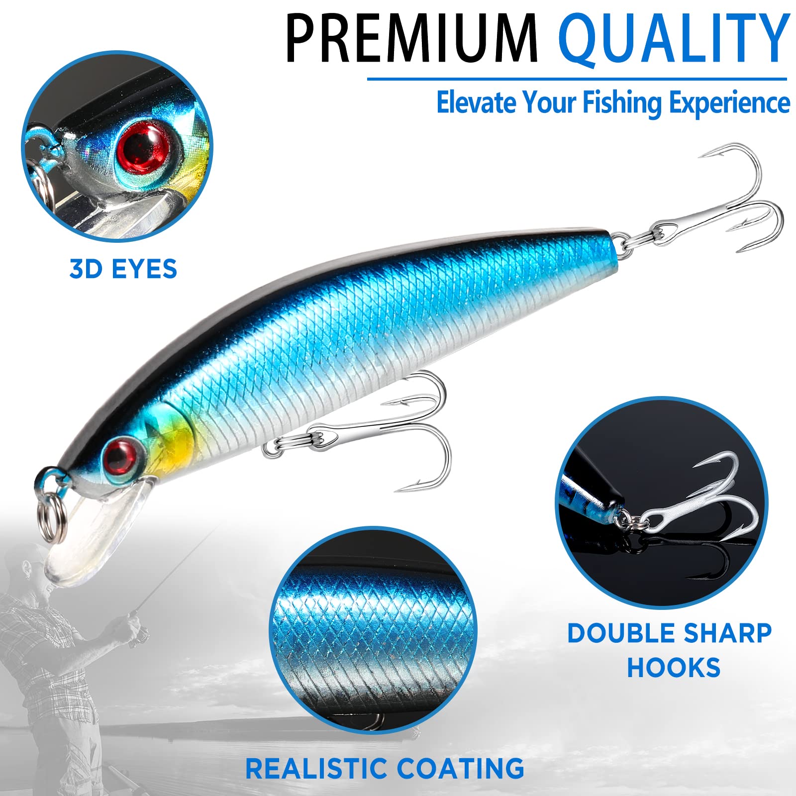 - 【Premium Quality Fishing Gear】-Elevate your fishing experience with our premium quality fishing kit. Our lifelike lures with 3D eyes and ultra-realistic coating attract any fish in your area, while our fishing spoons produce a brilliant flash that's irresistible to nearby fish. Crafted with high-quality materials, super sharp hooks, and durable accessories, catching fish has never been easier. Our gear remains durable even with multiple uses, perfect for all your future fishing adventures