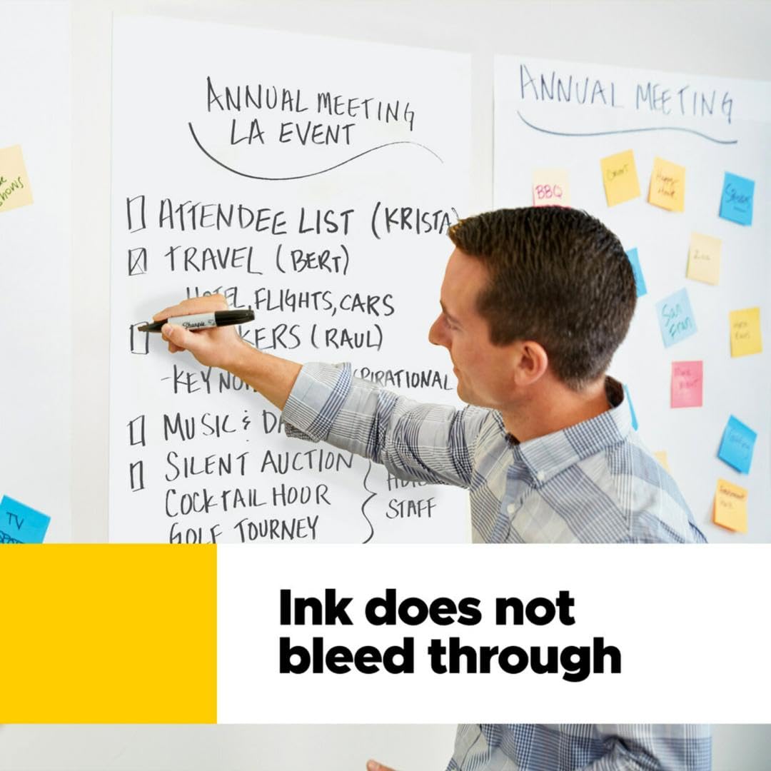 - INK BLEED-THROUGH RESISTANT PAPER - Large white premium self-stick flip chart paper that resists marker bleed-through to keep great ideas on the page, not on what's under the page
