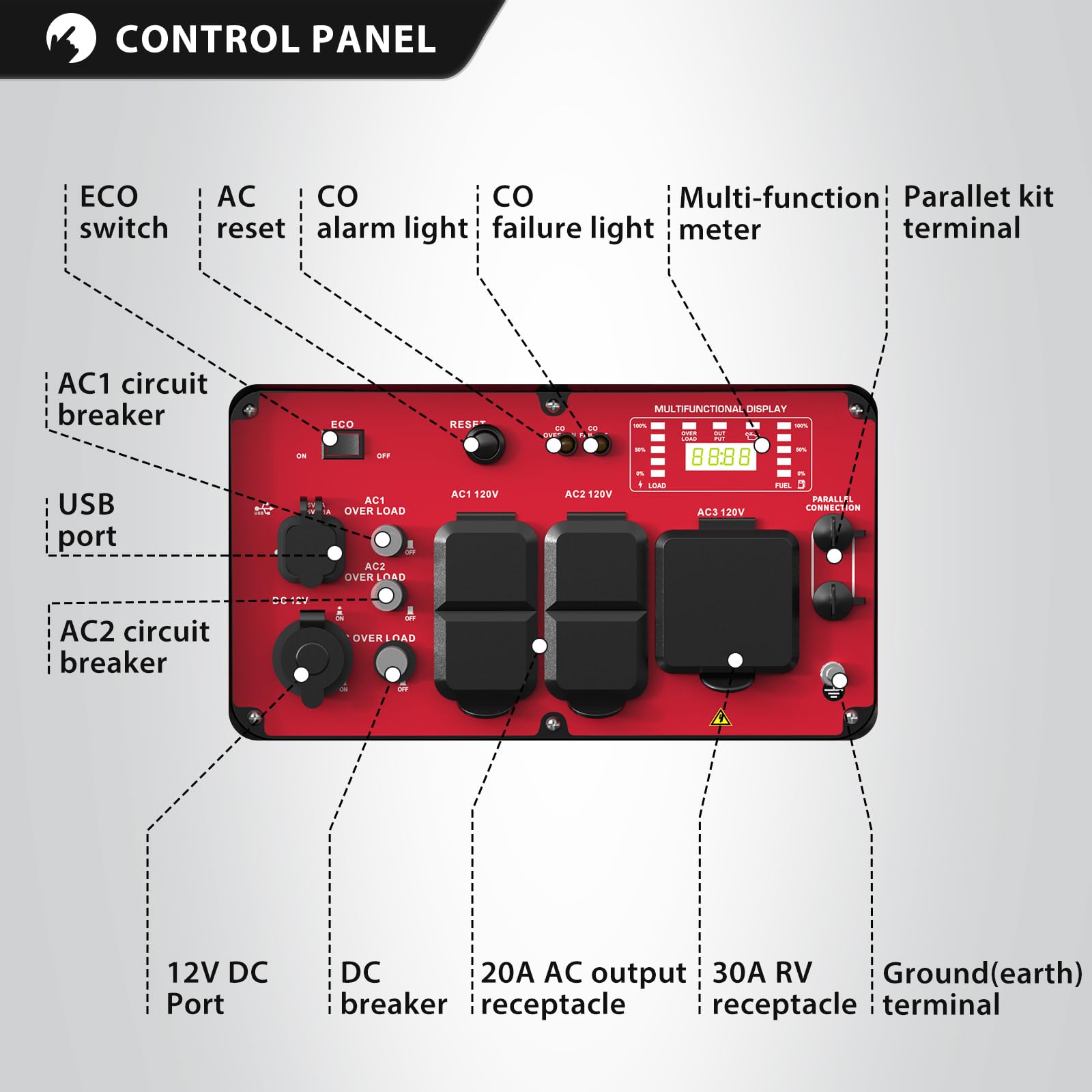 • Includes:CO Protect, 10 hours run time at 50% load, LED indicators alert, ECO Mode, Parallel Capable