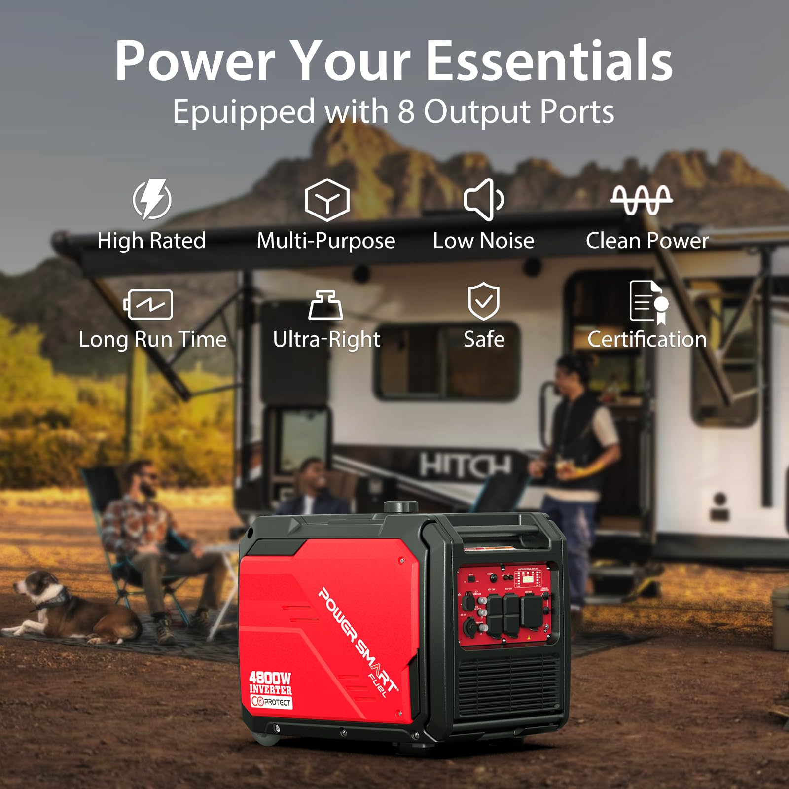 PowerSmart 4800-Watt Portable Inverter Generator with Wheels Handle Kit, CO Sensor, Quiet, RV-Ready, HB5046C