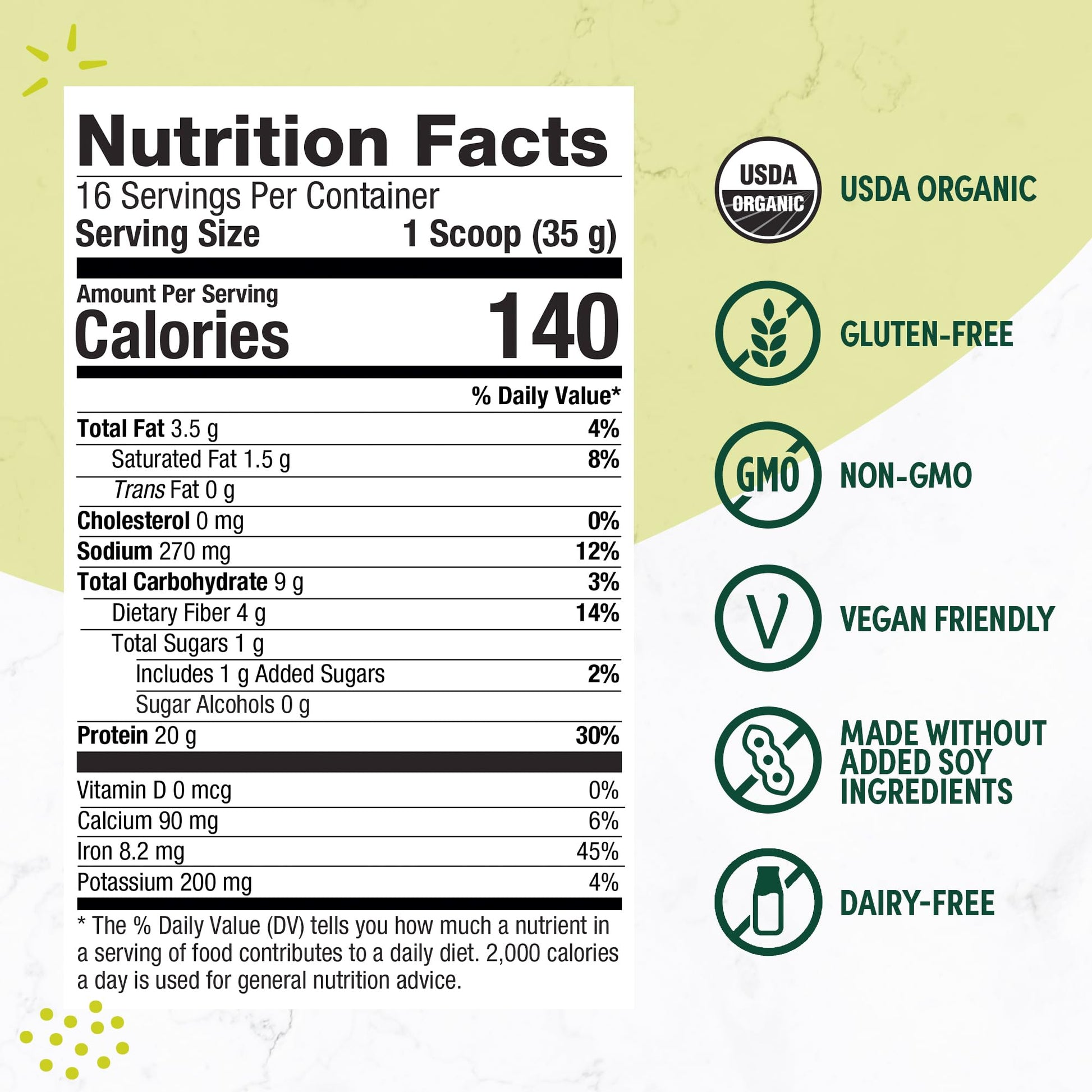 - No Artificial Flavors, Colors or Sweeteners: Purely Inspired Organic Protein is a pure formula with ingredients you can trust. It’s USDA organic, non-GMO, vegan friendly, dairy-free, gluten-free, and made without added soy ingredients.