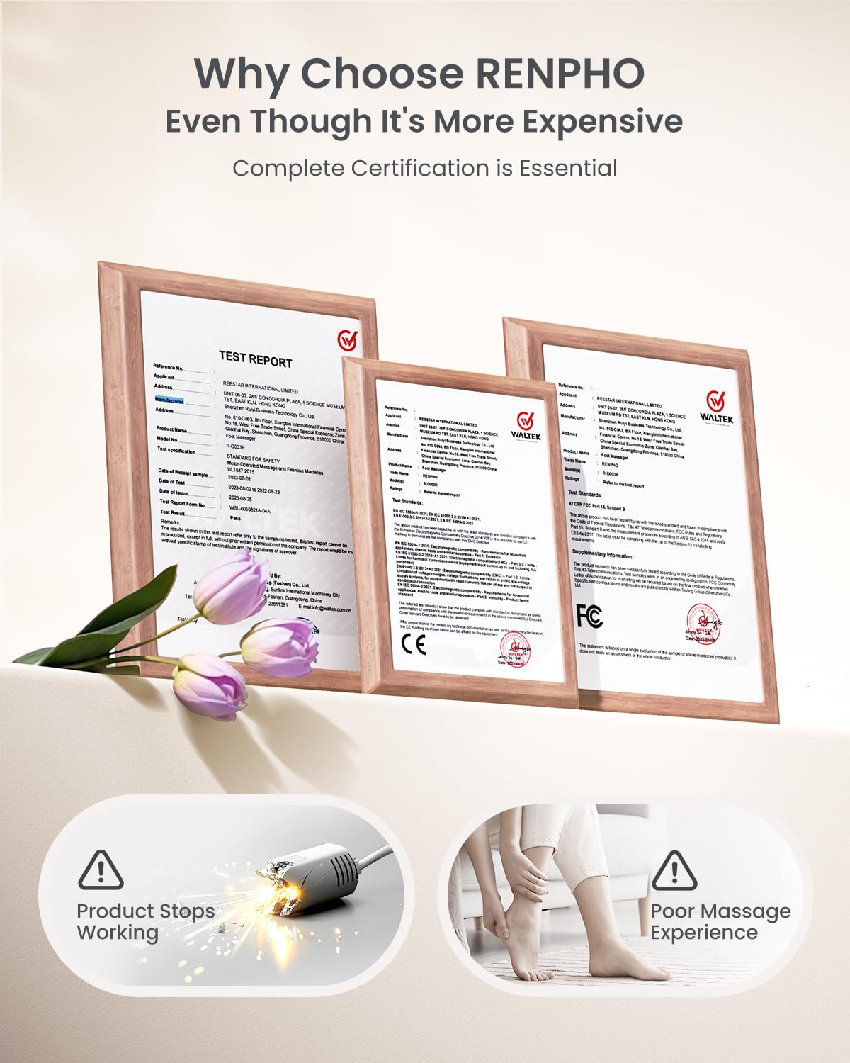 - Superior, Reliable Quality: RENPHO FSA HSA eligible foot massager machine with heat has been tested and certified by a number of professional organizations. Our design team has solved the common failures of foot massager in the market, such as stopping after a period of use and abnormal foot massage function