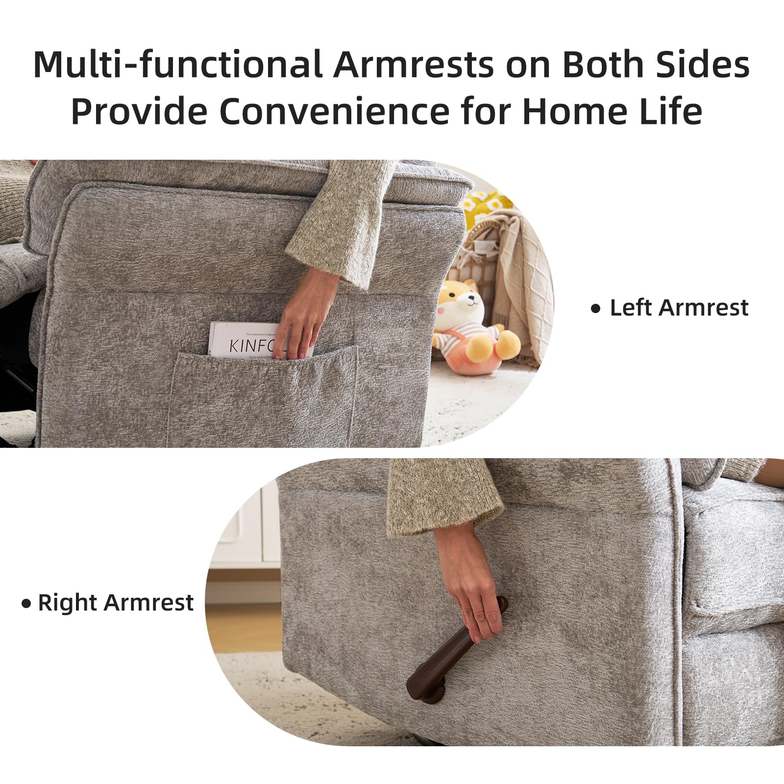 - 26" Extra Wide Seat: The 26" wider and larger seat is not only spacious and comfortable, but also suitable for a wide range of people, especially tall adults. The skin-friendly, comfortable chenille fabric and sleek, beautiful design add a touch of sophistication to living rooms and bedrooms.