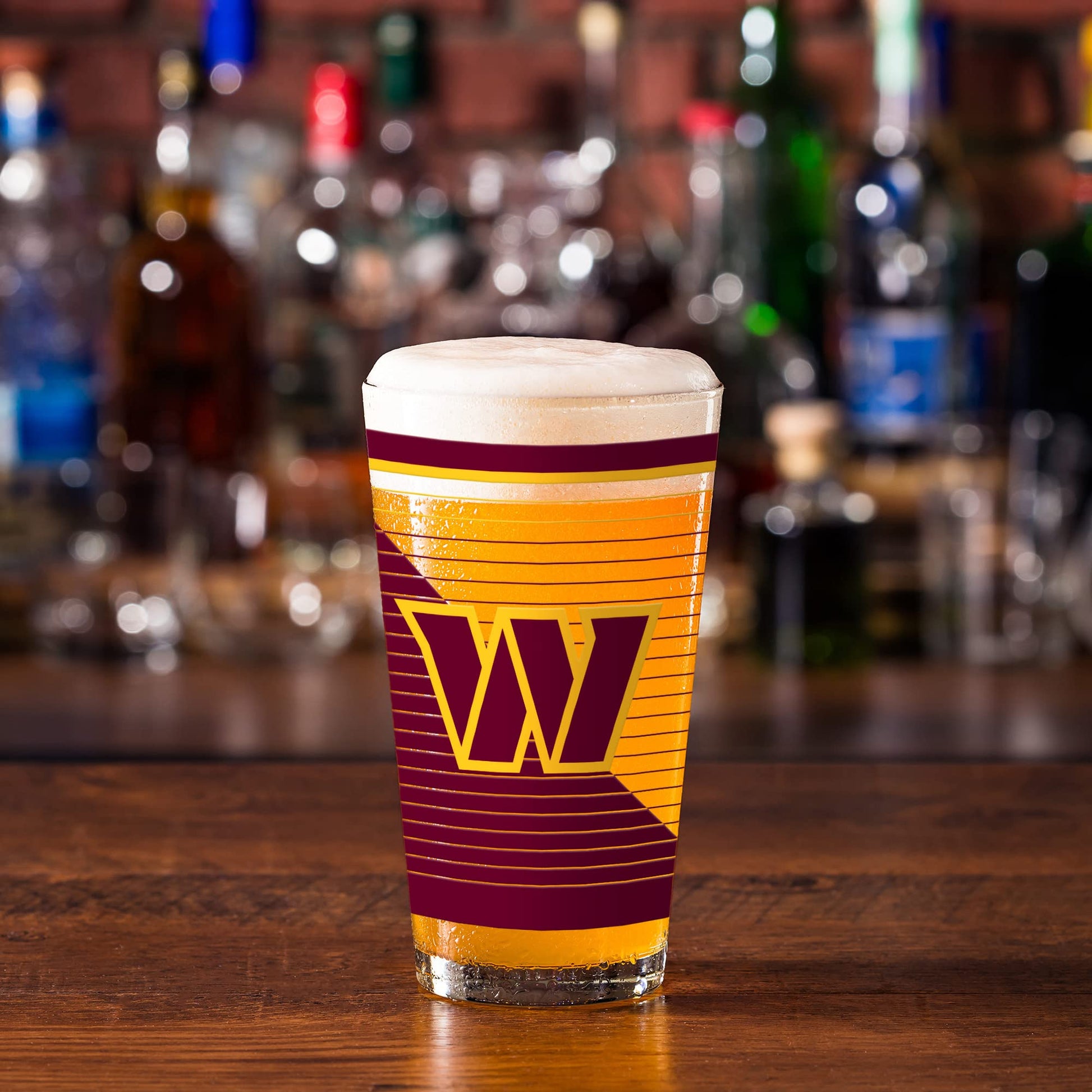 Details: Commanders fans, show off your team spirit in style with these NFL 16 oz Pint Glasses! This set of two glasses comes with digitally printed NFL logos and makes the perfect gift for any Commanders fan! The glasses are made of a strong, durable glass and are great for everyday use or special occasions. These 16 oz glasses are the perfect size for a good amount of any drink. Not only can you use them for beer, but you can also use them for fruit punch, iced tea, or any other tall drink. They are also attractive enough to be part of an ensemble of glassware. Ideal for a home bar or housewarming gift! This 2-pack set comes with an attractive and dishwasher-safe finish. They are easy to store and can fit neatly in your cabinet. The digitally printed design won't wash away, so you can enjoy your team logo well into the future. Great for yourself or as a gift to any football fan!