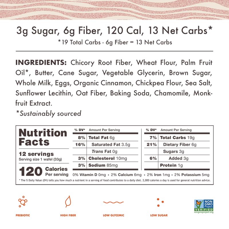 • Healthy Snack with Only 3g of Sugar: Contains 3g of Sugar, 0g Trans Fat, 120 calories, and 6g of Fiber in each 33g stroopwafel