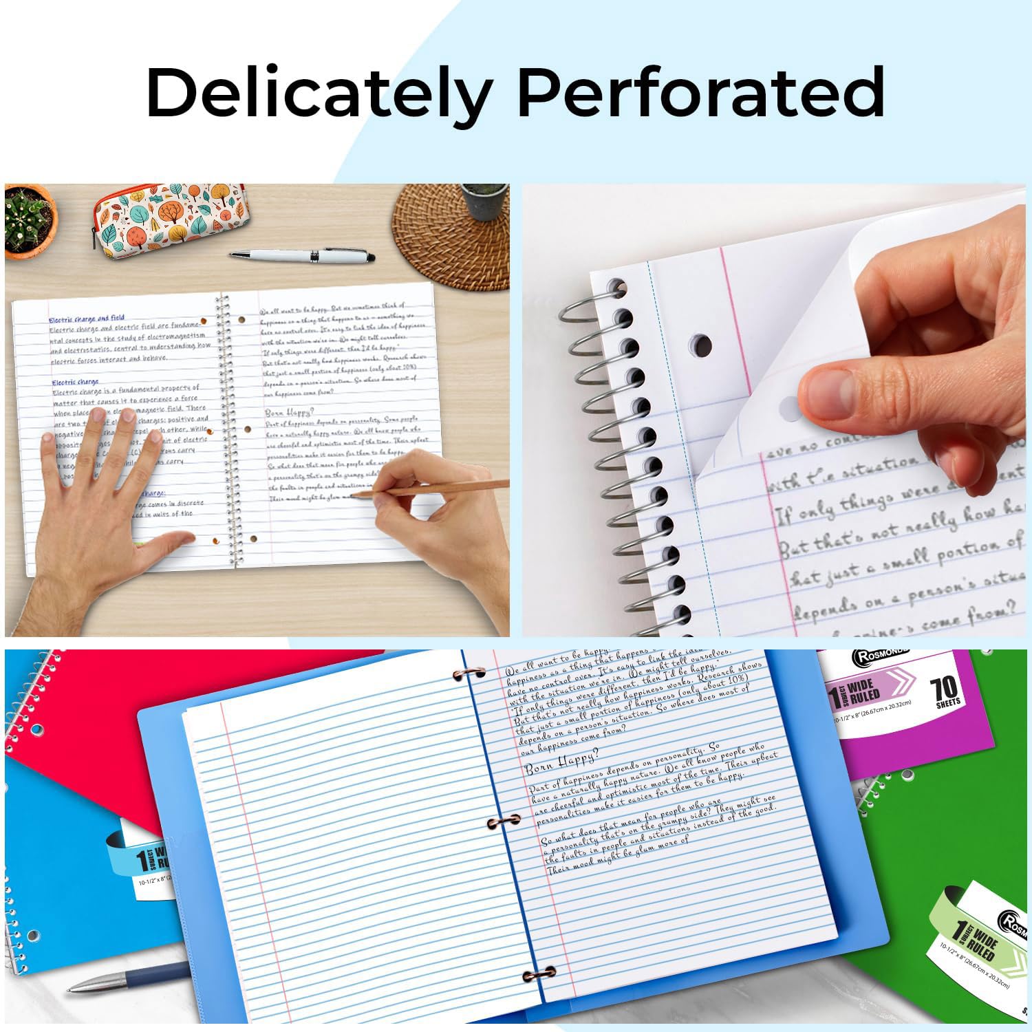 - A CLASSROOM CLASSIC: This 12-pack of 1-subject notebooks helps you identify your subjects at a glance with color-coding efficiency. You can always rely on Rosmonde notebooks to keep up with your busy day! Rosmonde Spiral Notebooks come with high quality sturdy and ink-bleed resistant paper, which makes them the perfect choice for Home, School or Office needs.