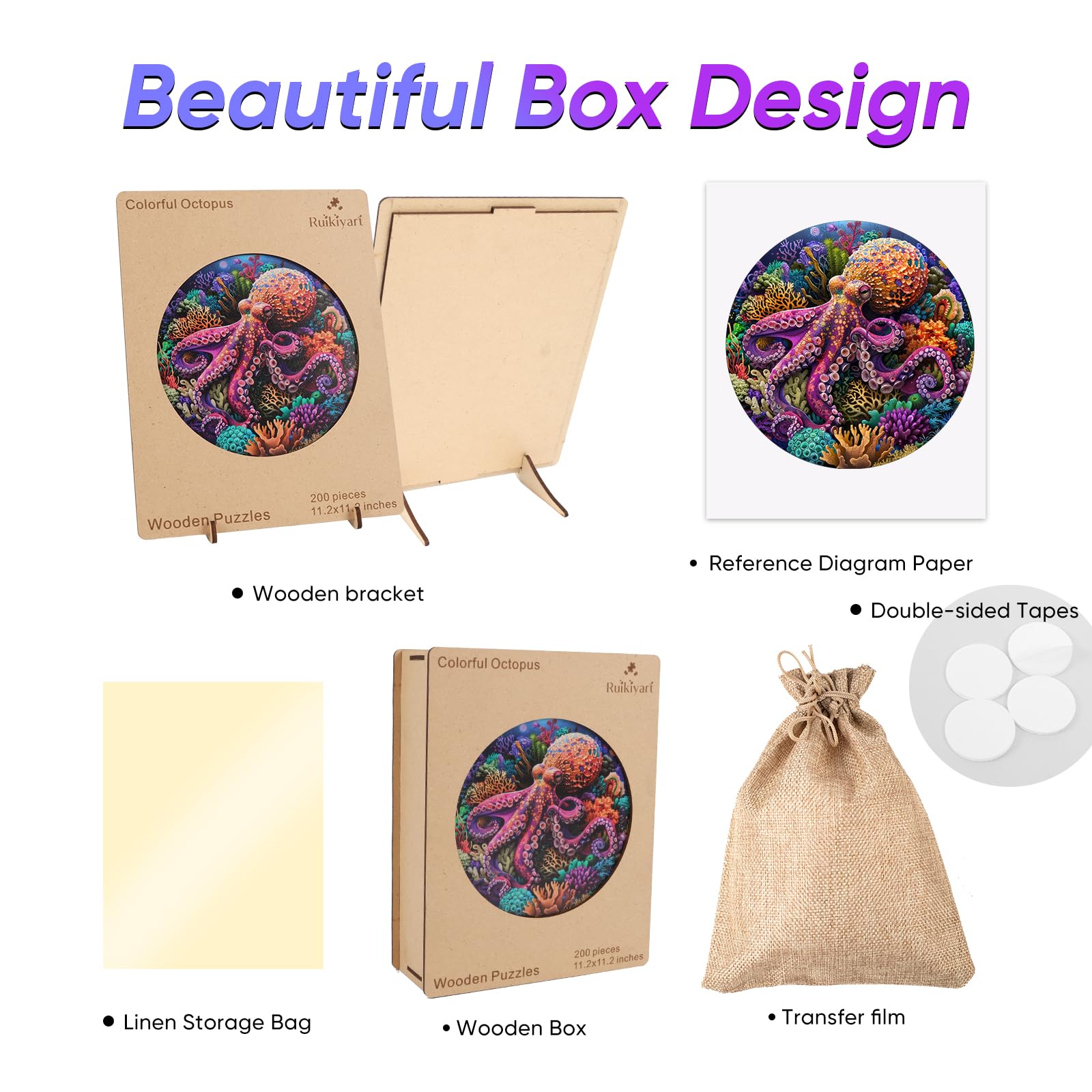 Ruikiyart Wooden Puzzles for Adults Octopus Wooden Jigsaw Puzzles 200pcs Unique Shapes Family Game Fabulous Gift for Kids and Adults on Birthday,Thanksgiving,Christmas 11.2 x 11.2 Inches