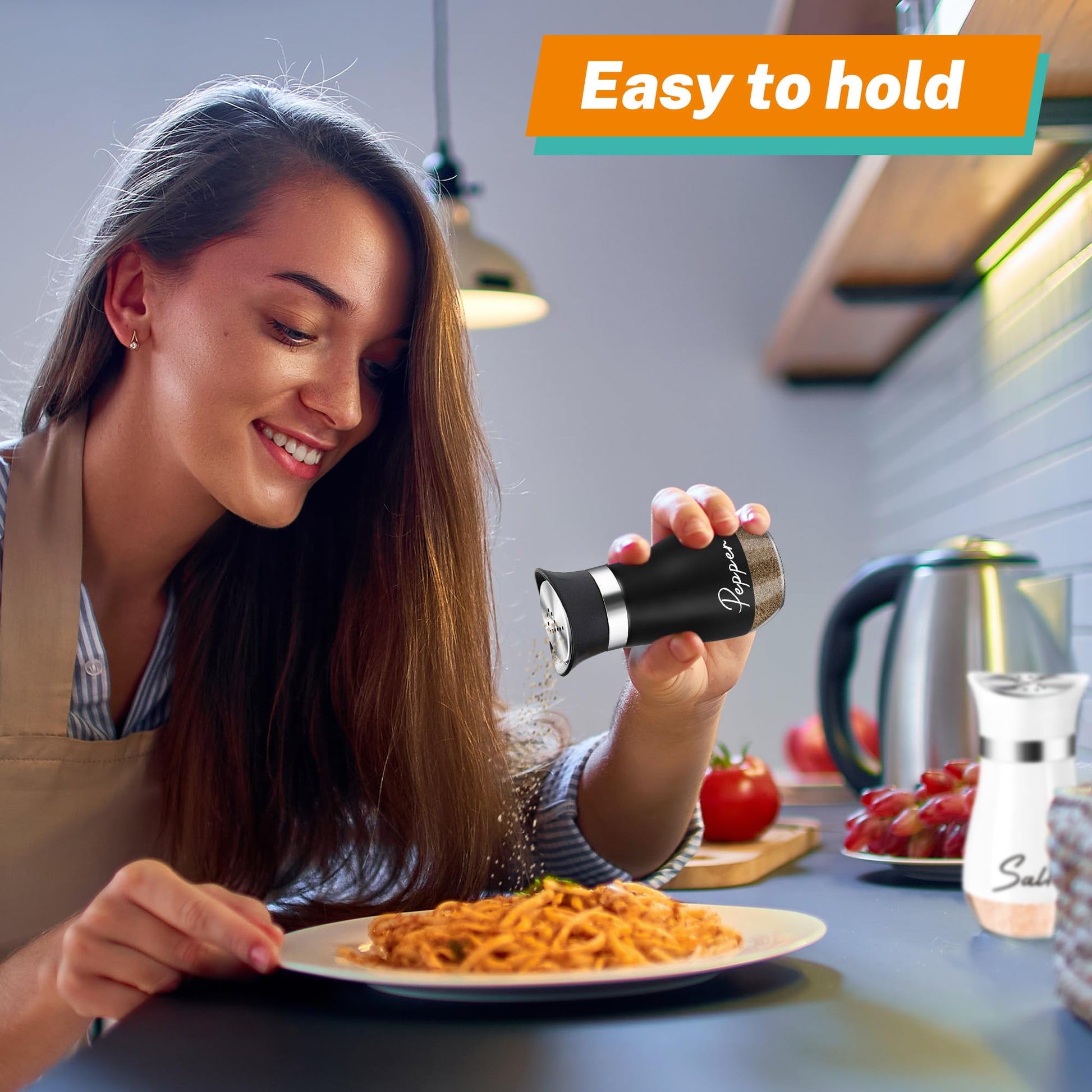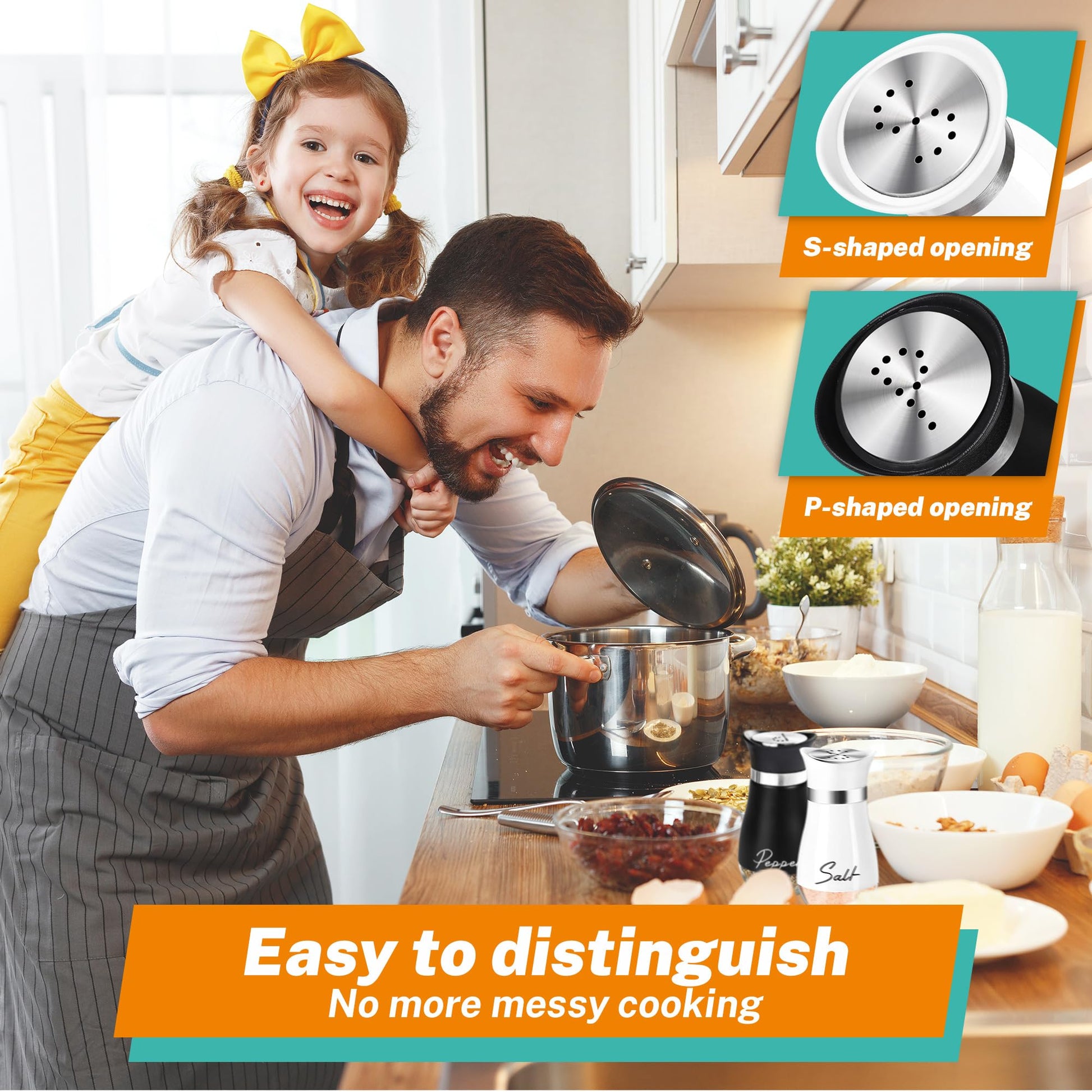 - No Over-Seasoning:There are 11 small holes evenly distributed on the Stainless Steel Lid, you only need to shake 1-2 times at most to get the salt and pepper flowing just right, saving time and not over-seasoning. You and your family can enjoy the pleasuring of cooking